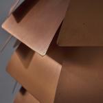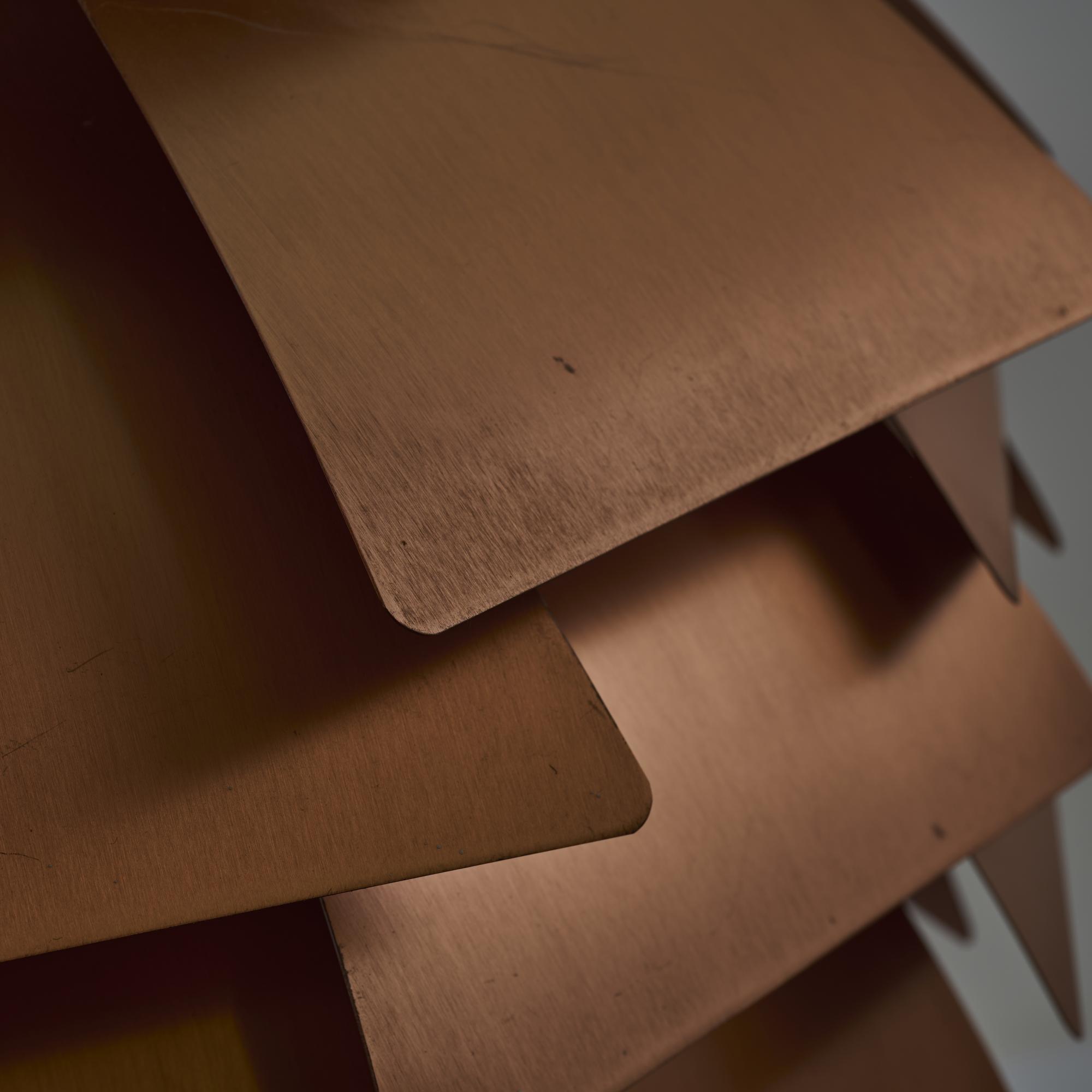 Chrome-plated metal frame, sheet metal, lacquered white, copper-plated aluminum lamellae, lacquered white on the underside.