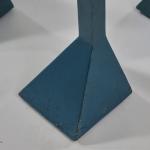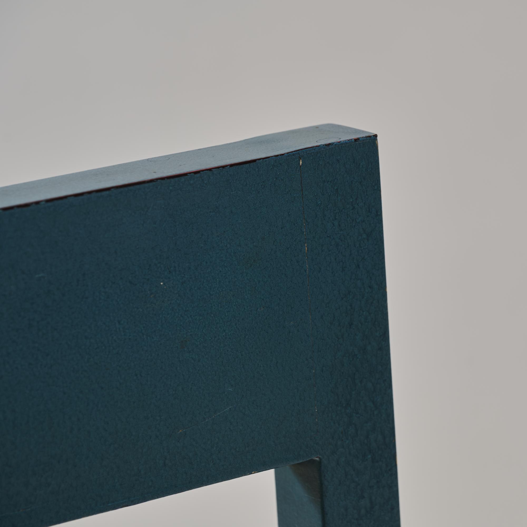 Wooden construction, wood, painted metallic light blue, greenish-yellow marbled linoleum.