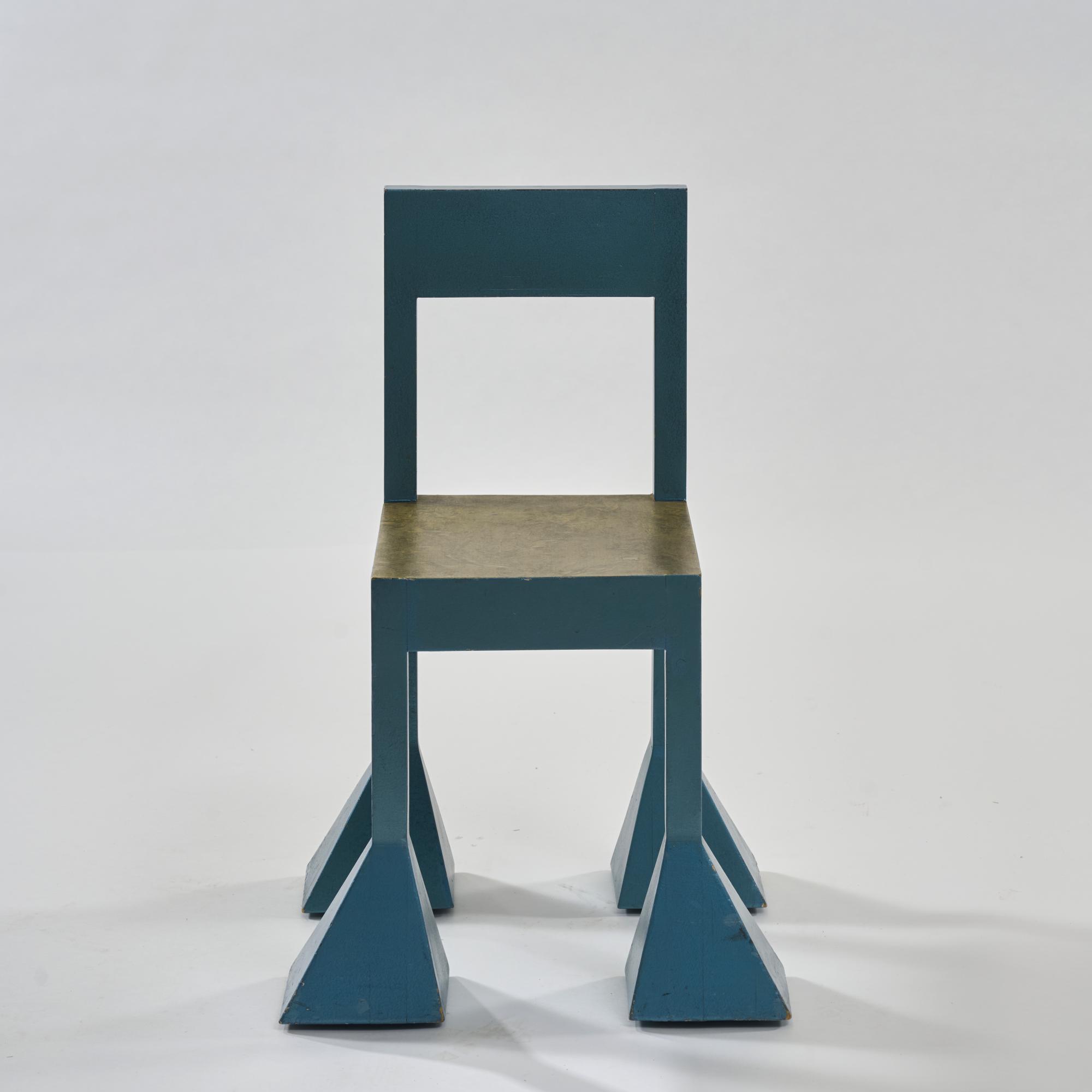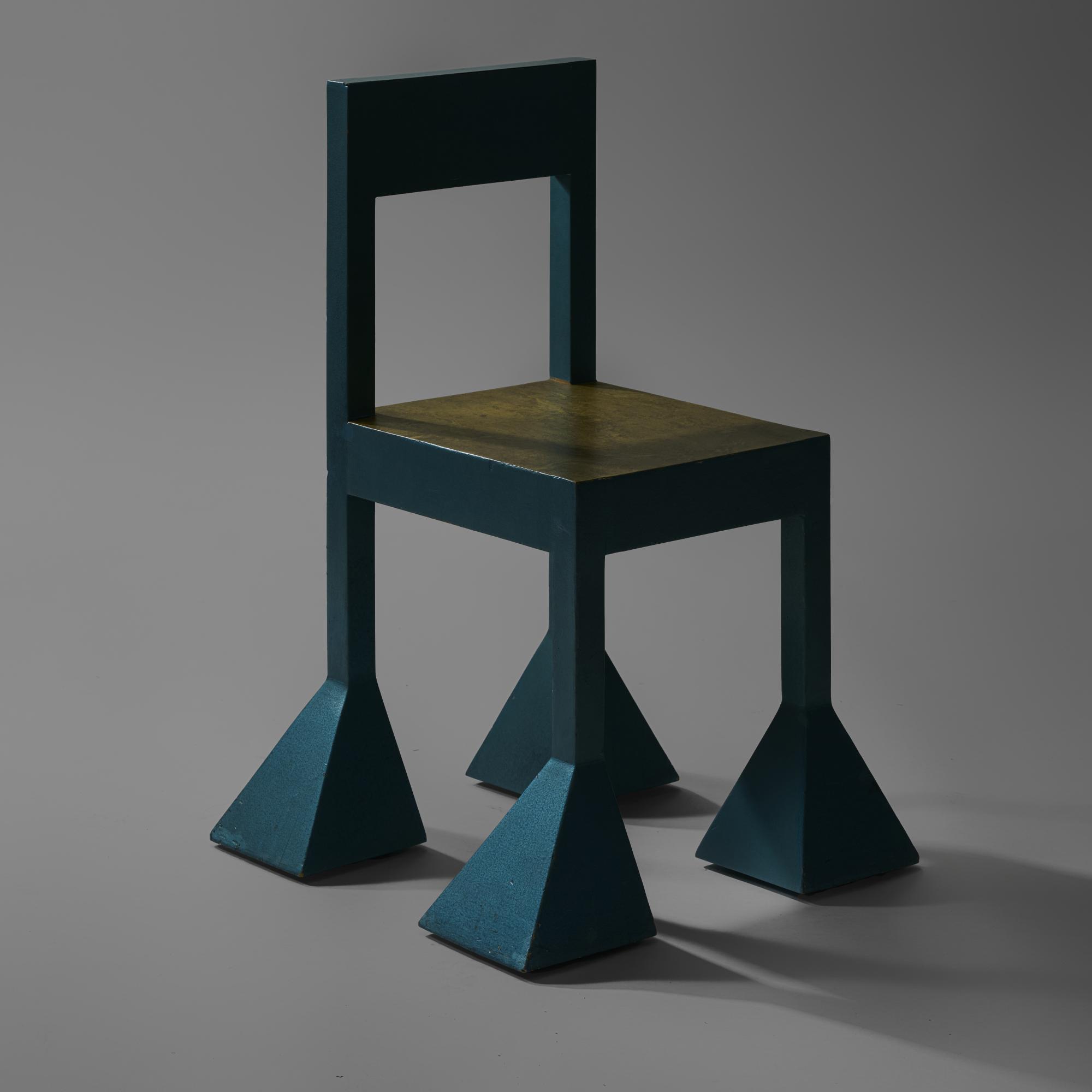 Kries, Atlas of Furniture Design, Vitra Design Museum, Weil / Rhine 2021, p. 834. Alchimia The Alchimia design movement was founded in Milan in 1976 as a reaction against functionalist modernism in Italy by Alessandro Guerriero and his sister Adriana. It viewed design as an artistic process beyond industrial constraints and also drew on ideas from the Arts and Crafts movement. Alessandro Mendini, an official member of Alchimia since 1979, emphasized the connection between art and design as well as the personal signature of the designer in his theories and works. The core team usually consisted of five to seven members; depending on the project, additional external artists and designers were brought in by Guerriero and Mendini. From 1970 to 1976, Mendini was also editor of Casabella, an architecture and design magazine that had been in existence since 1928. His designs for the Spaziale table and chair are already visible on the cover of issue 299, published in March 1975. The two objects offered here were shown in 1982 in the exhibition La stanza da manuale at the Galleria Comunale d'Arte Moderna in Bologna and sold shortly afterwards to a gallery in Düsseldorf. Both an invitation to the exhibition and an invoice issued by Alchimia for the sale have been preserved. The chair and table have been in the possession and use of the consignors from western Germany since 1992. From November 11 this year until January 22, 2026, the ADI Museum in Milan will be showing the exhibition ‘Alchimia. La Rivoluzione Del Design Italiano’.