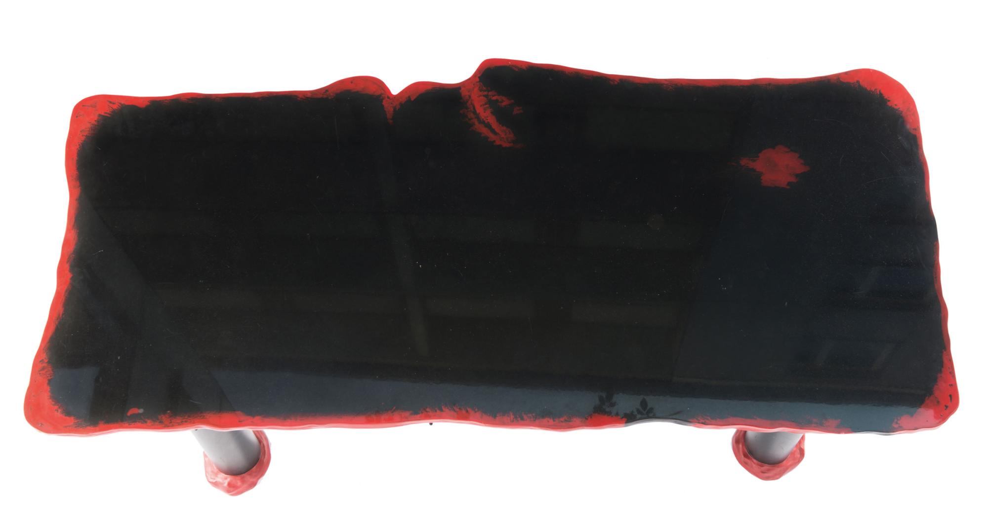 The table top has the form of a head seen from the side.