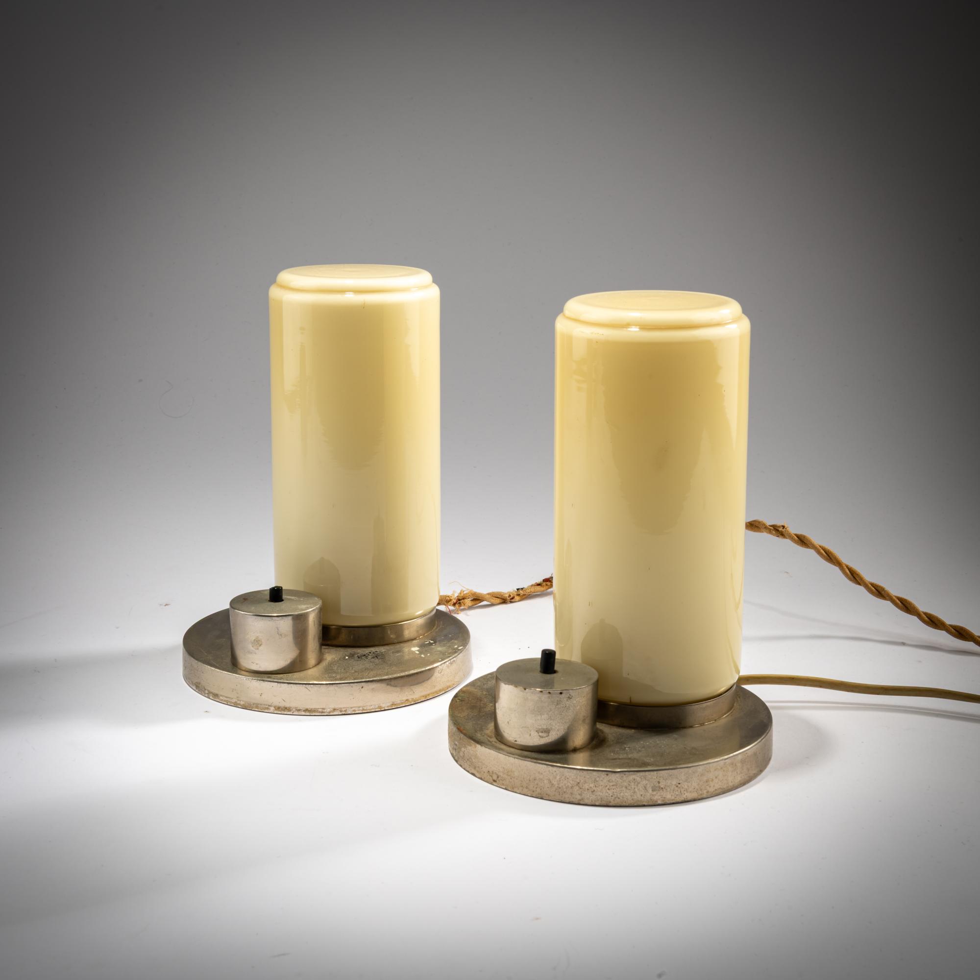 Nickel-plated sheet metal, yellowish-white glass, black plastic.