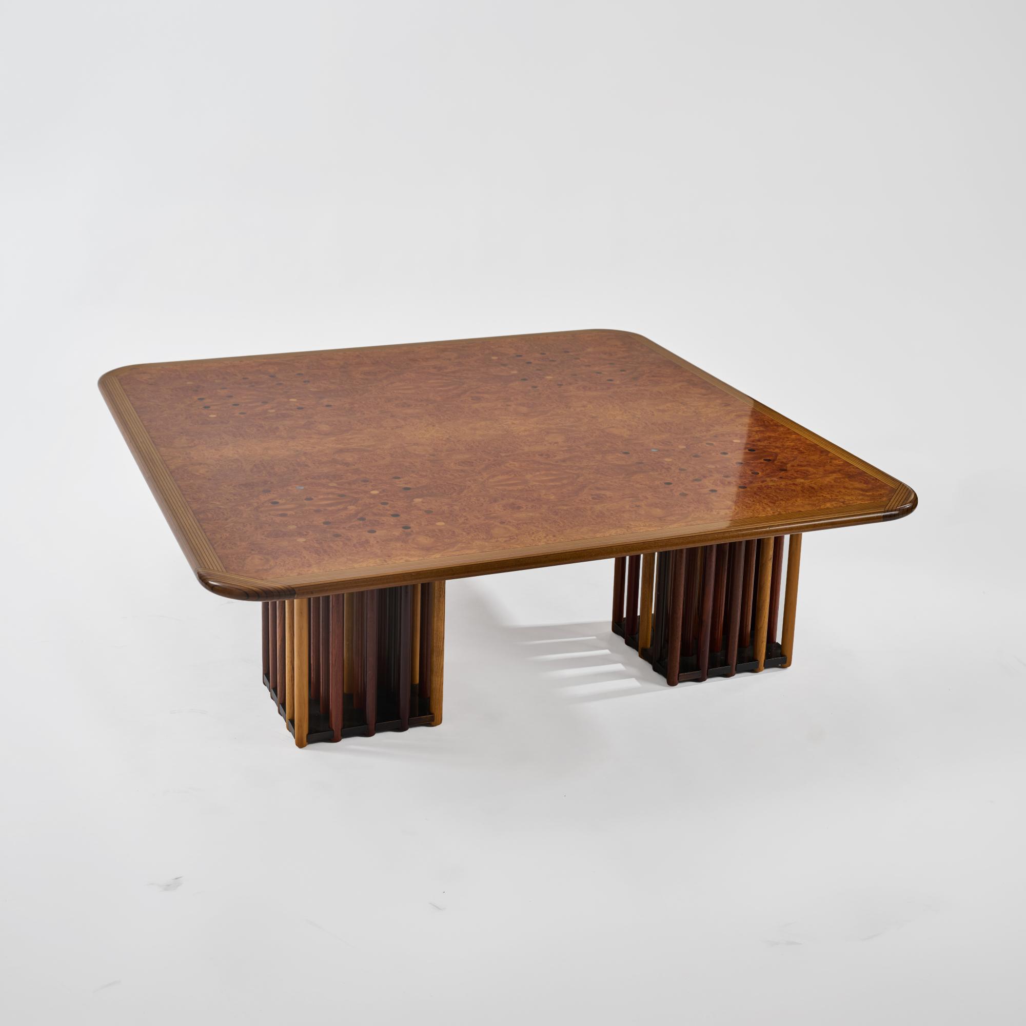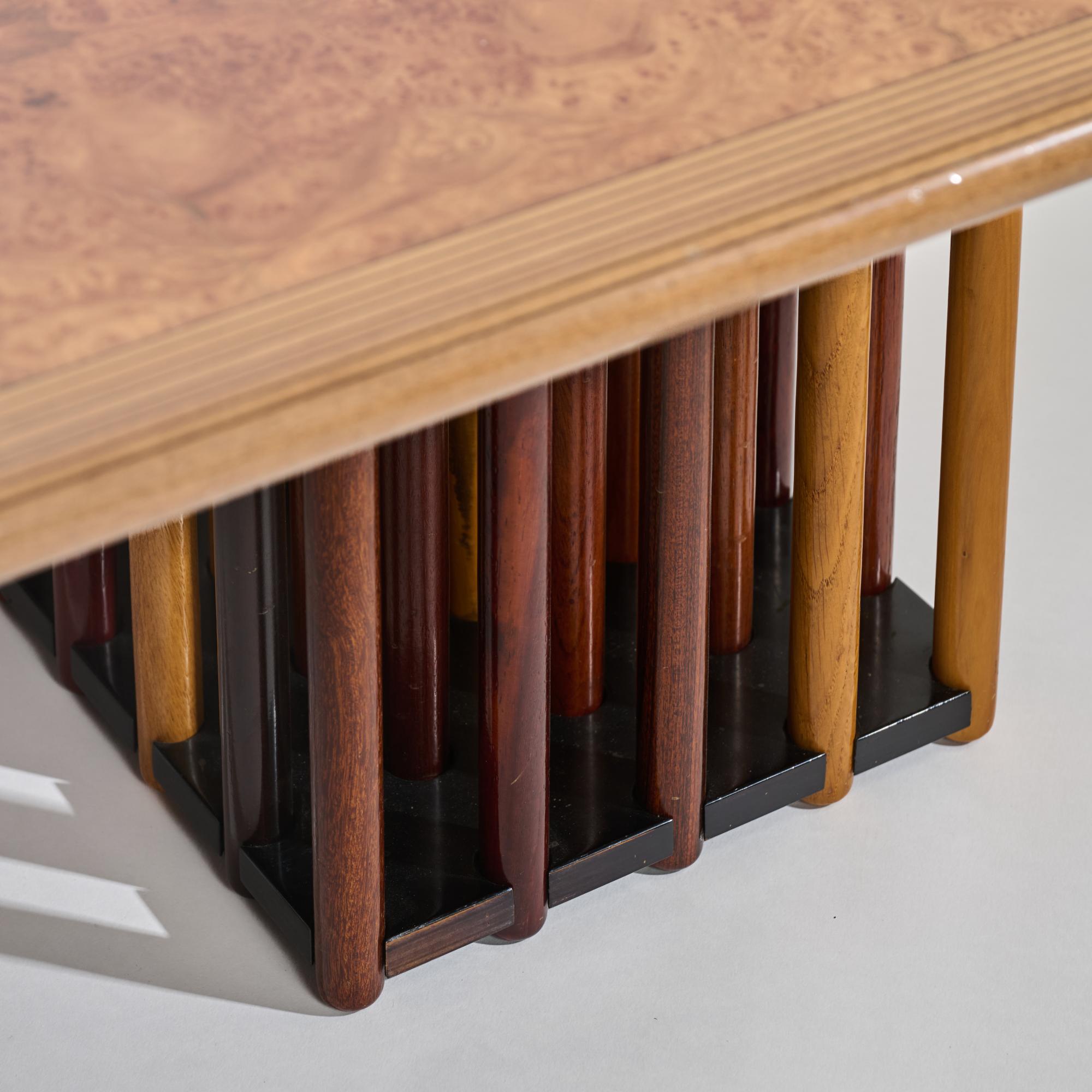 Maple root wood veneer, birch, beech, oak and solid fruit wood.