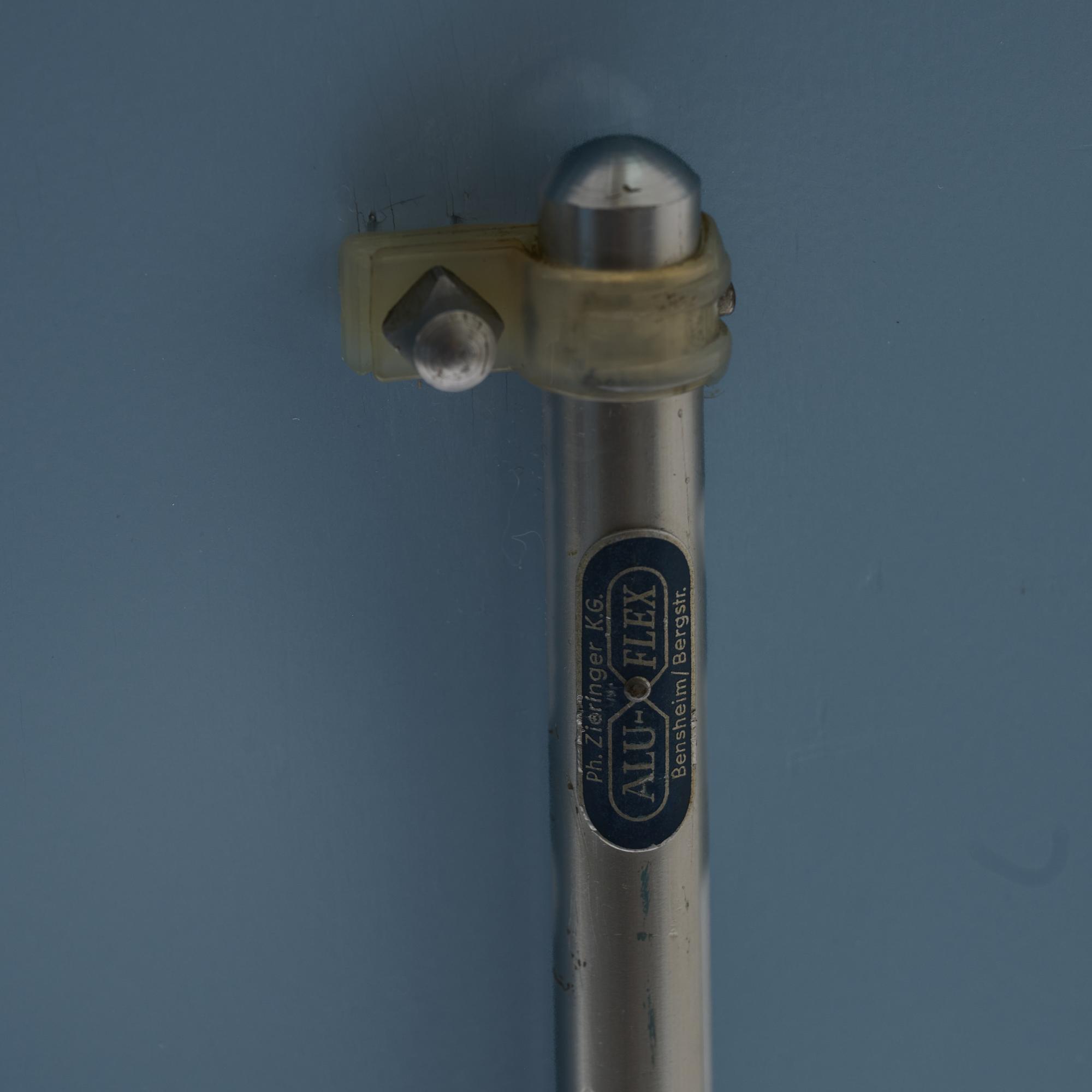 Aluminum tube, aircraft plywood, painted light blue.