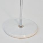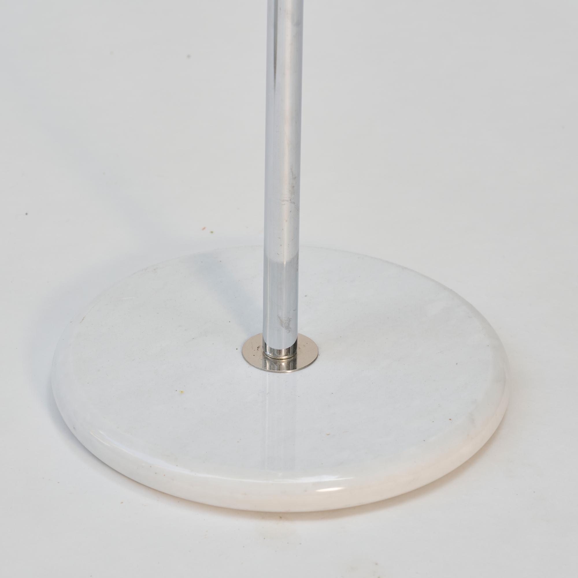 White and gray veined marble, chrome-plated tubular metal, white and cream-painted sheet metal.