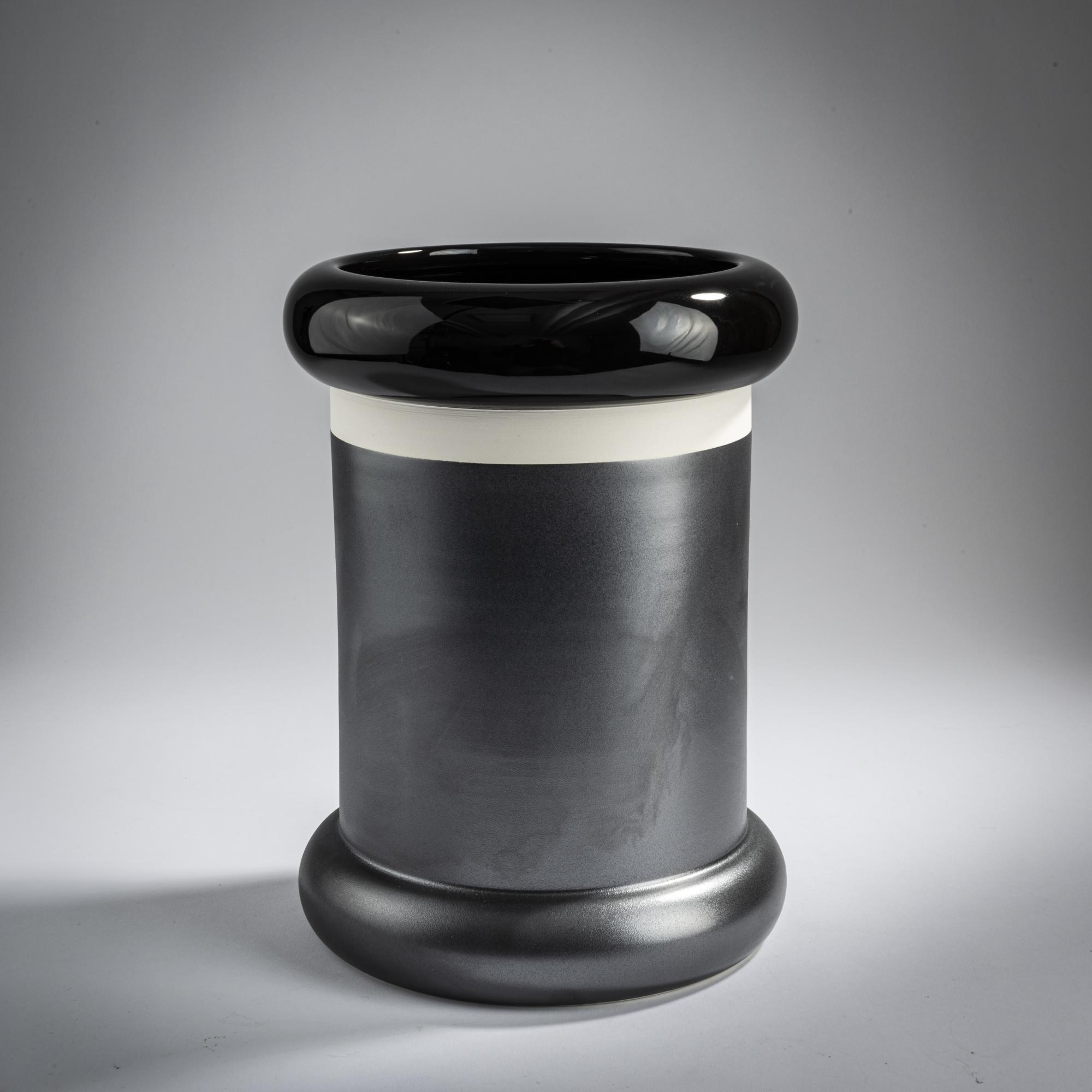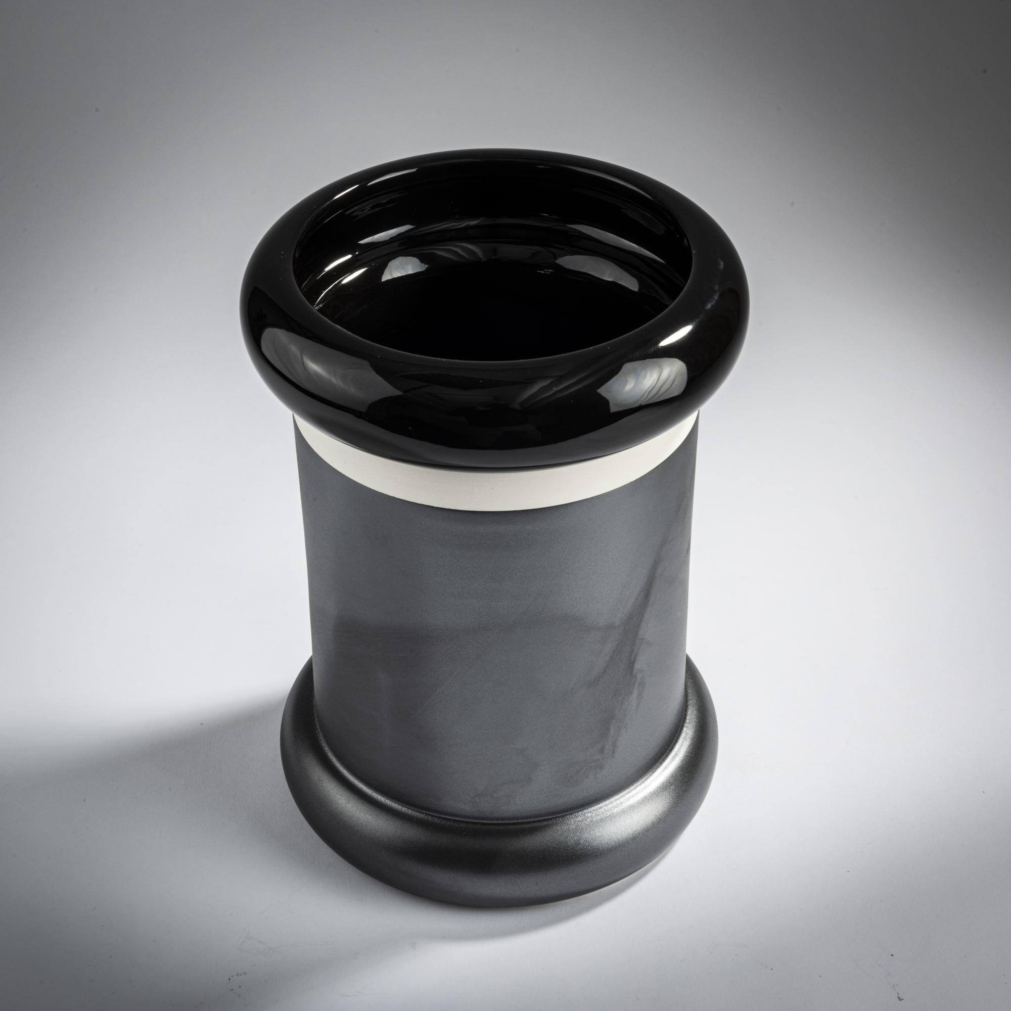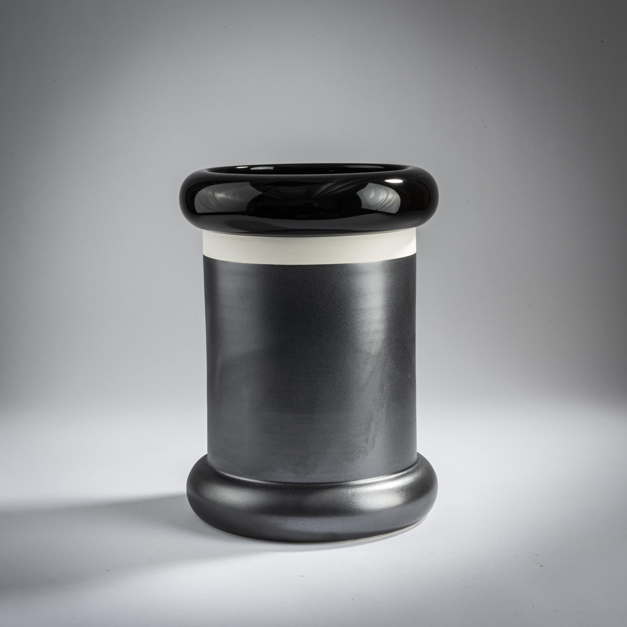 Earthenware, glazed in anthracite gray and black.