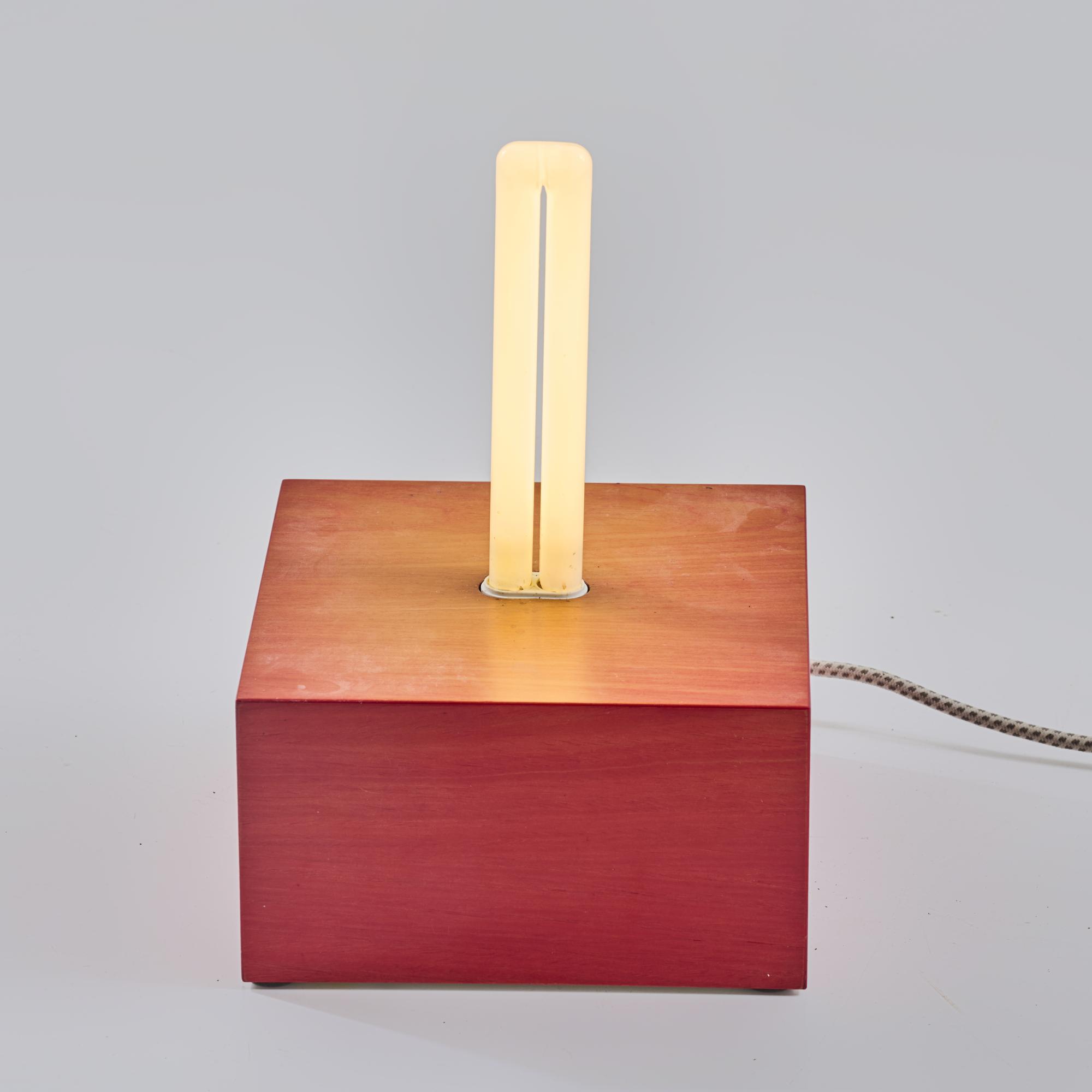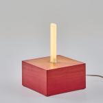 Wooden box construction, lacquered red, fluorescent tube.