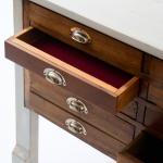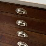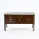 Wooden box construction, beechwood, dark stained, grey lacquered, sheet metal, chrome-plated.