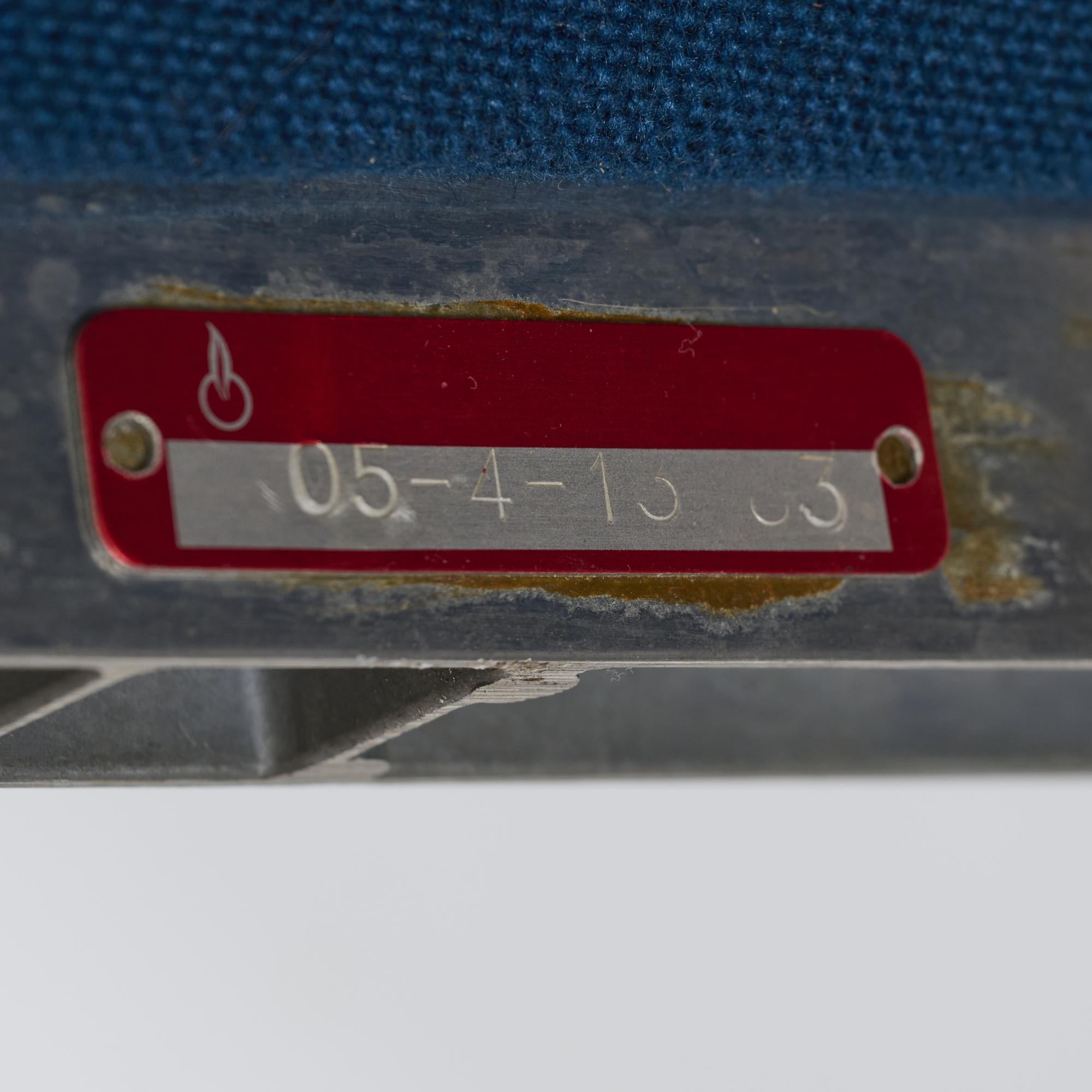 Sectional aluminum, fabric upholstery, red and blue.
