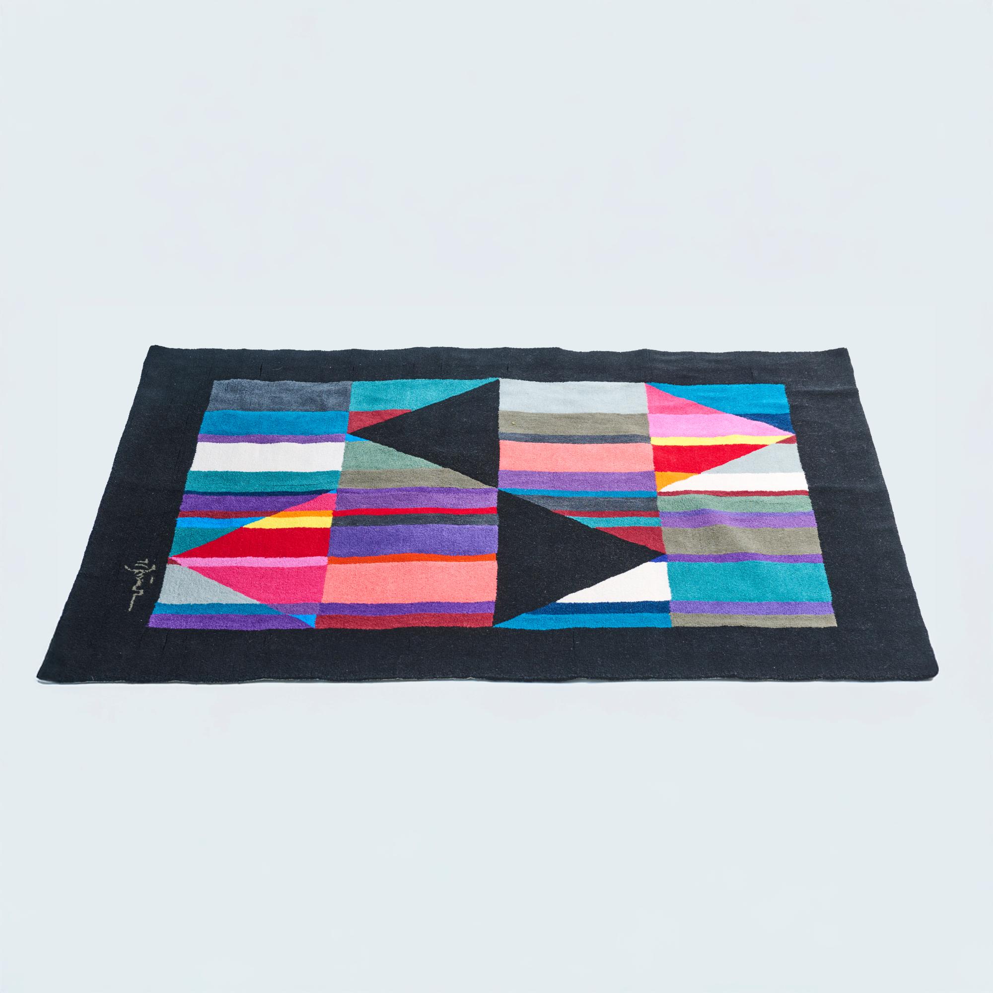 Pure new wool, multicolored, tufted.