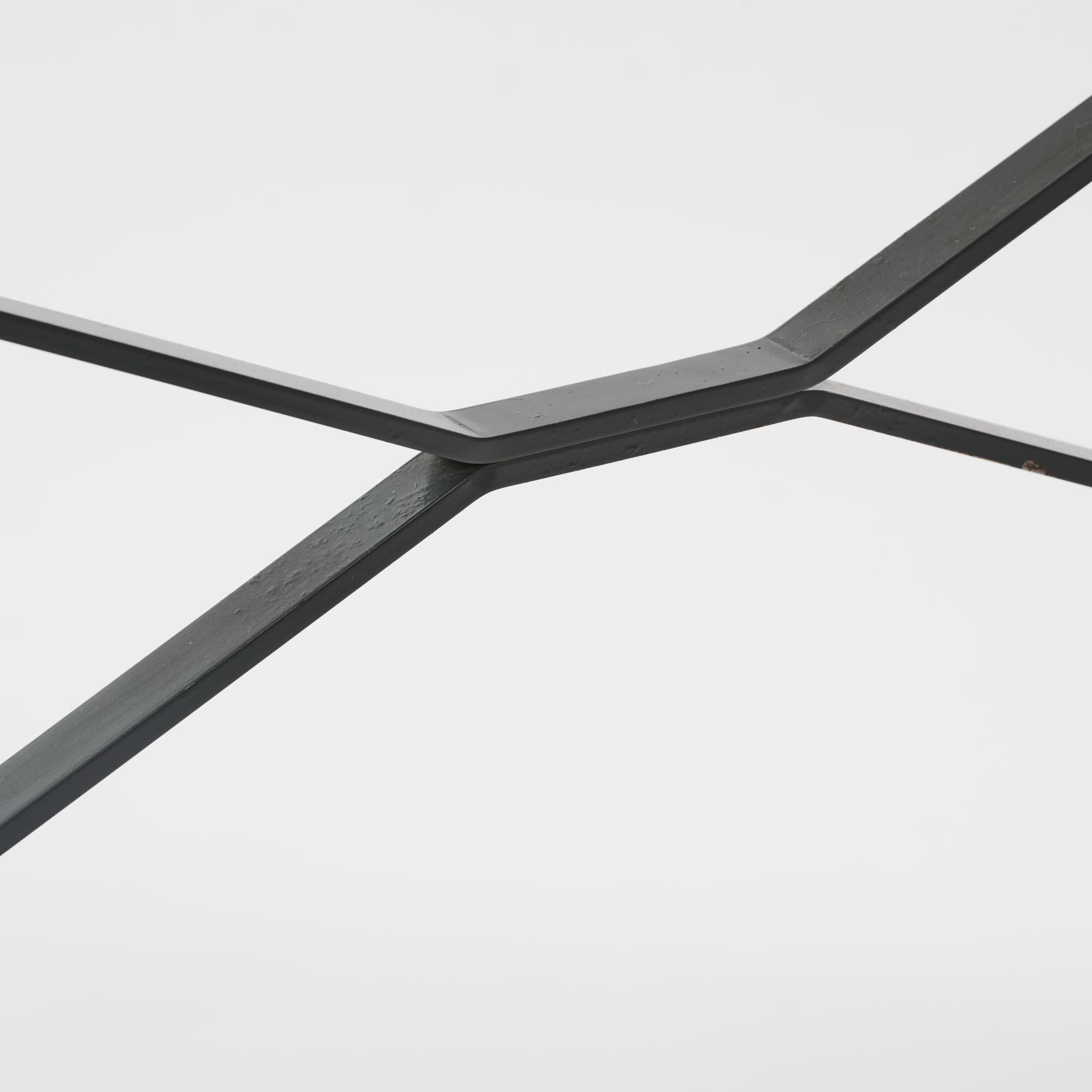 Wood, plywood, black lacquered metal.
