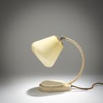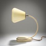 Sheet metal, metal tube, lacquered white, shade made of yellowish-white glass.