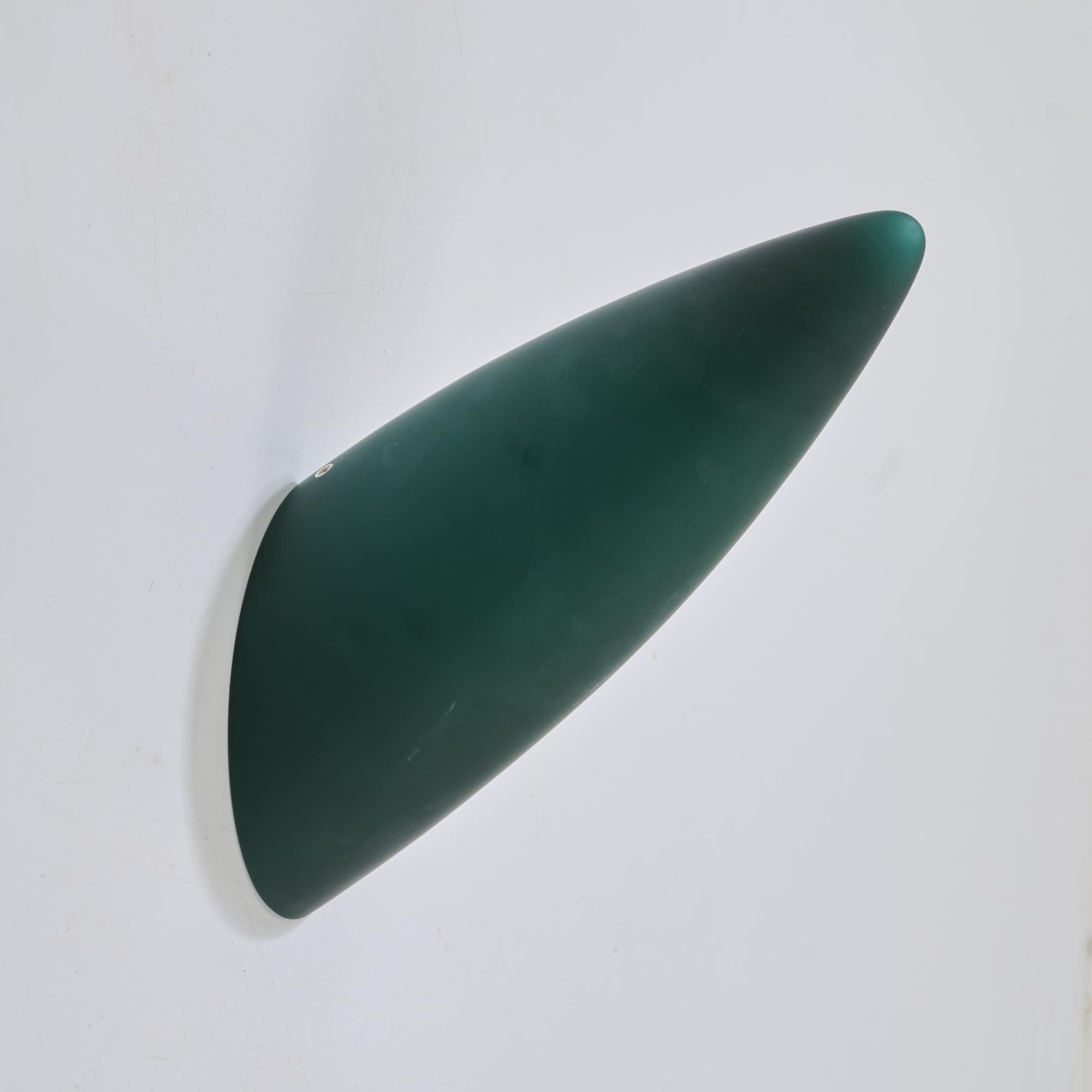 Glass, opal white and dark green, sheet metal.