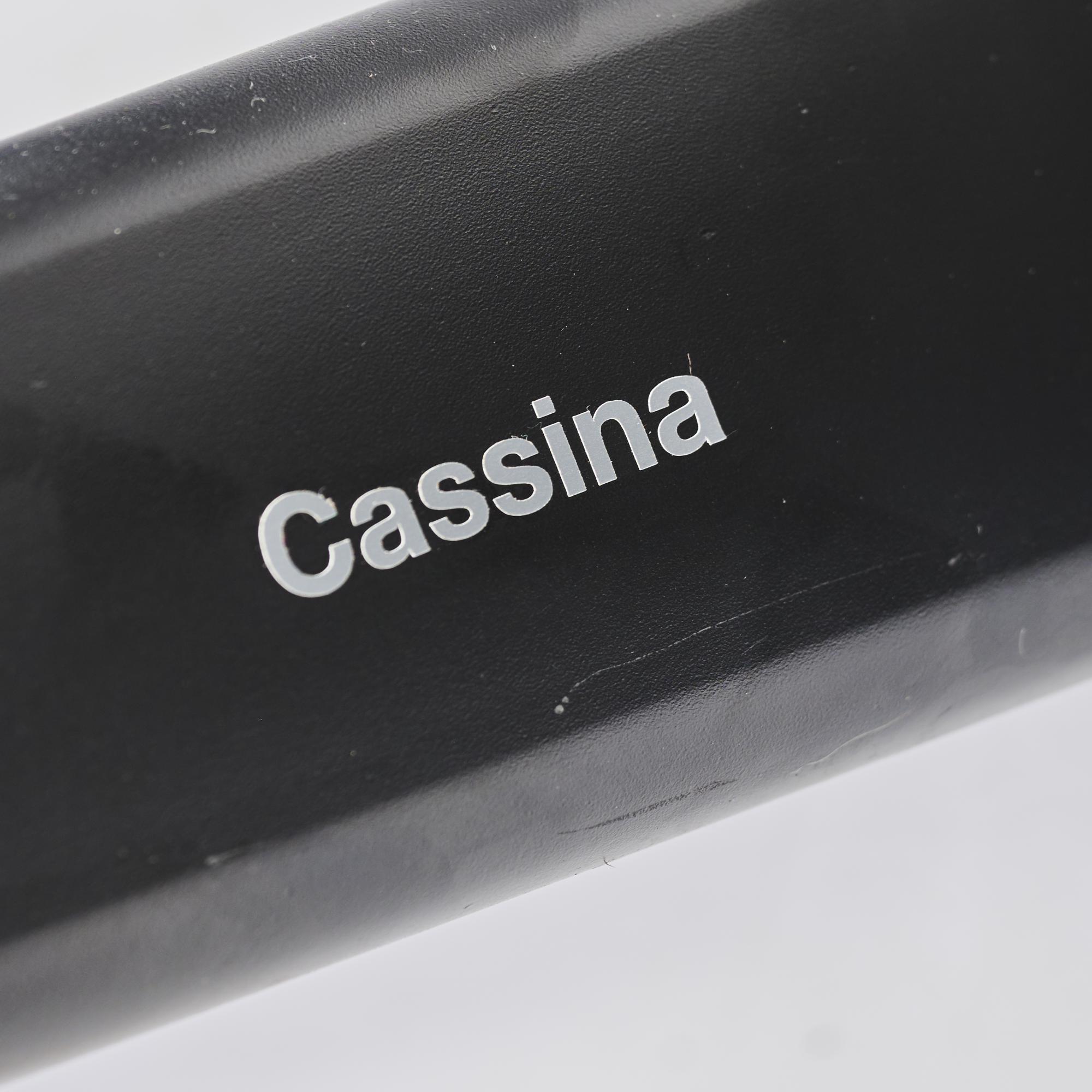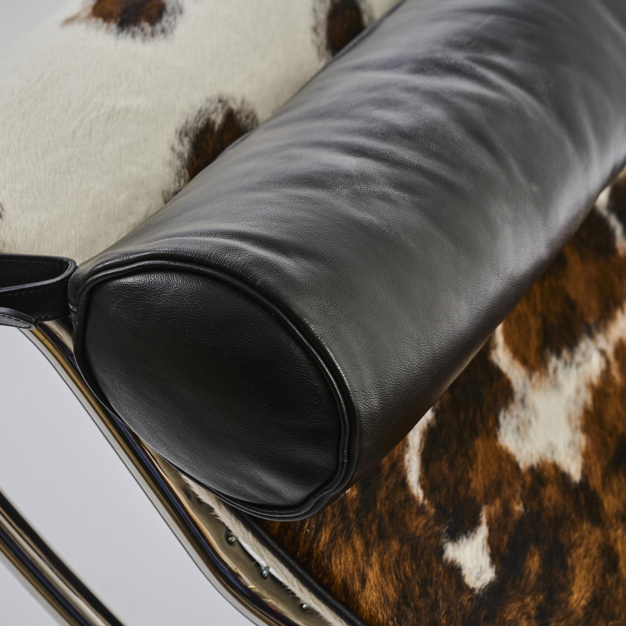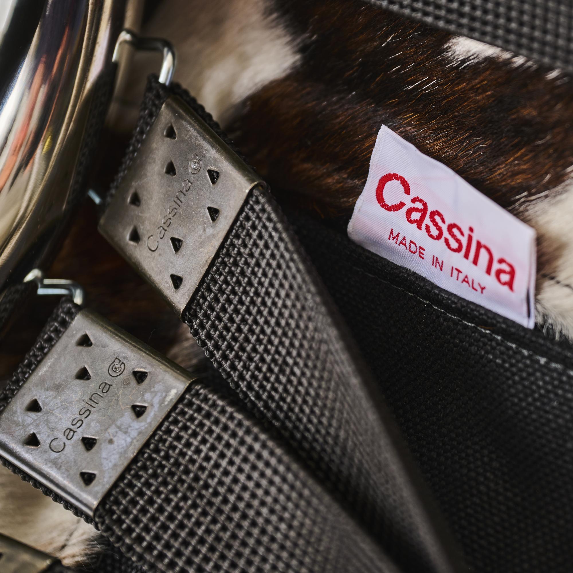 Marked: Fabric: Cassina, Logo, LC 4 No. 103690, facsimile signatures Le Corbusier P Jeanneret Ch Perriand, manufacturer's label. Frame: Cassina Logo, signatures (embossed), Cassina.