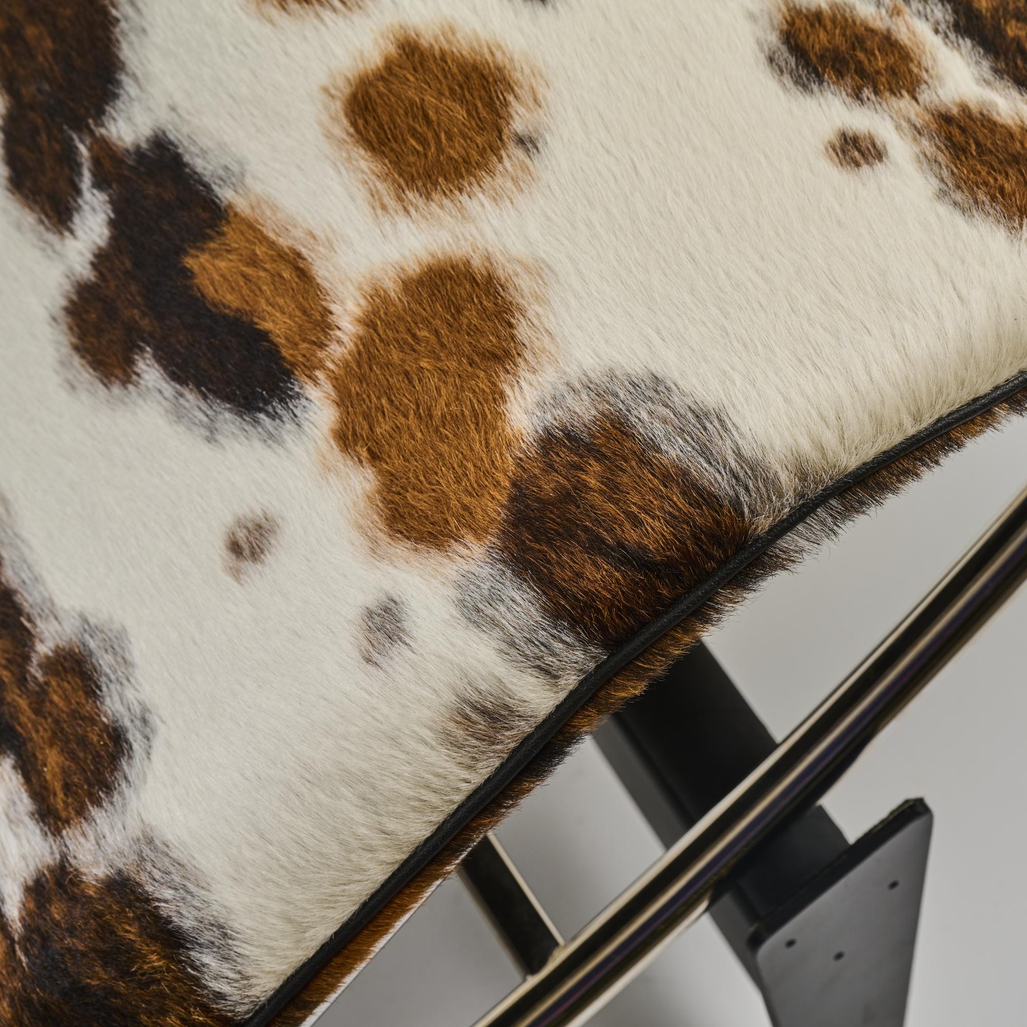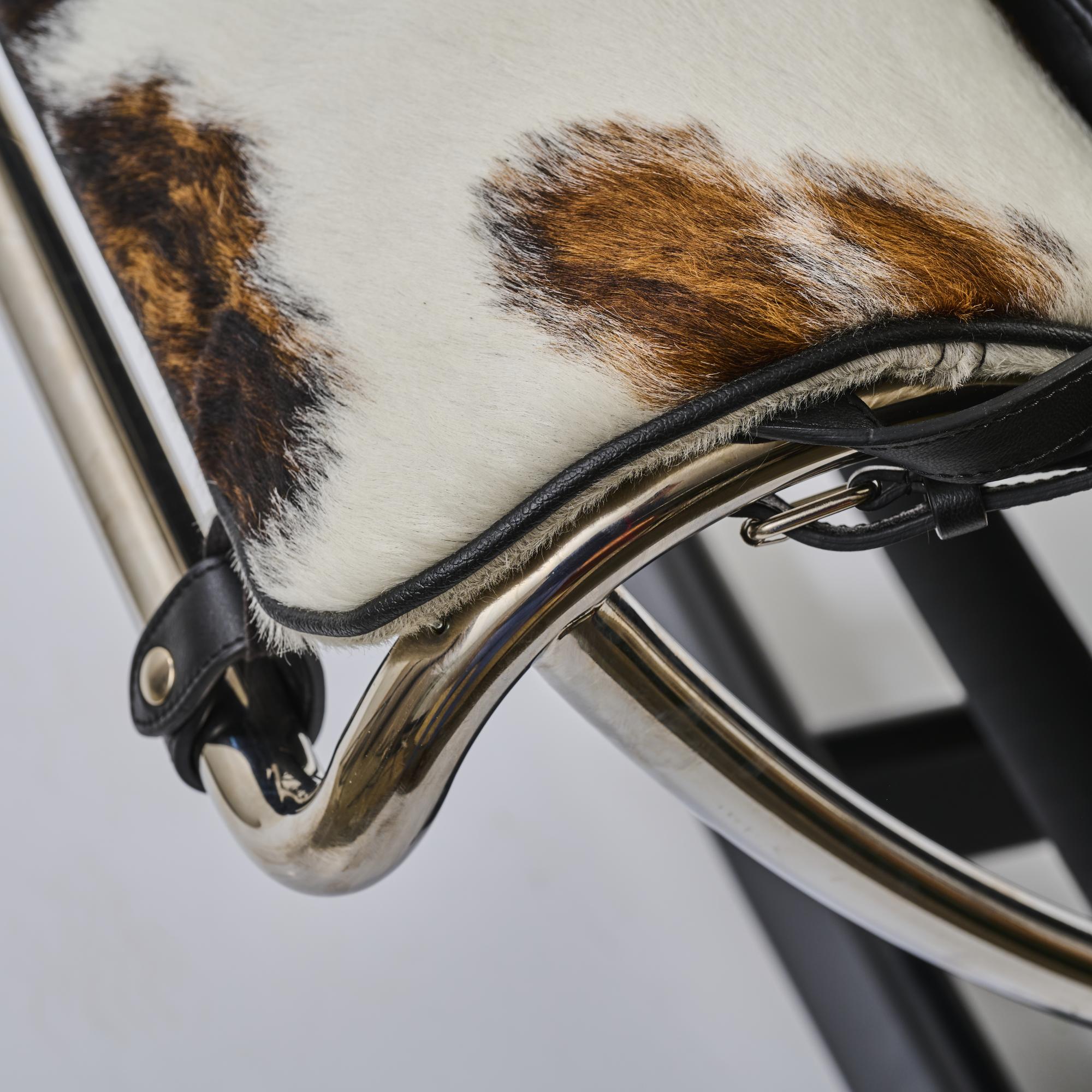 Chrome-plated tubular steel, sectional metal, lacquered black, cowhide, black leather.