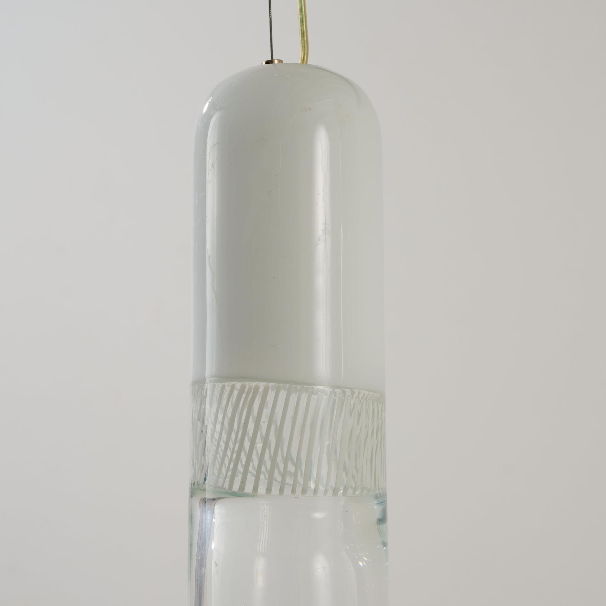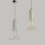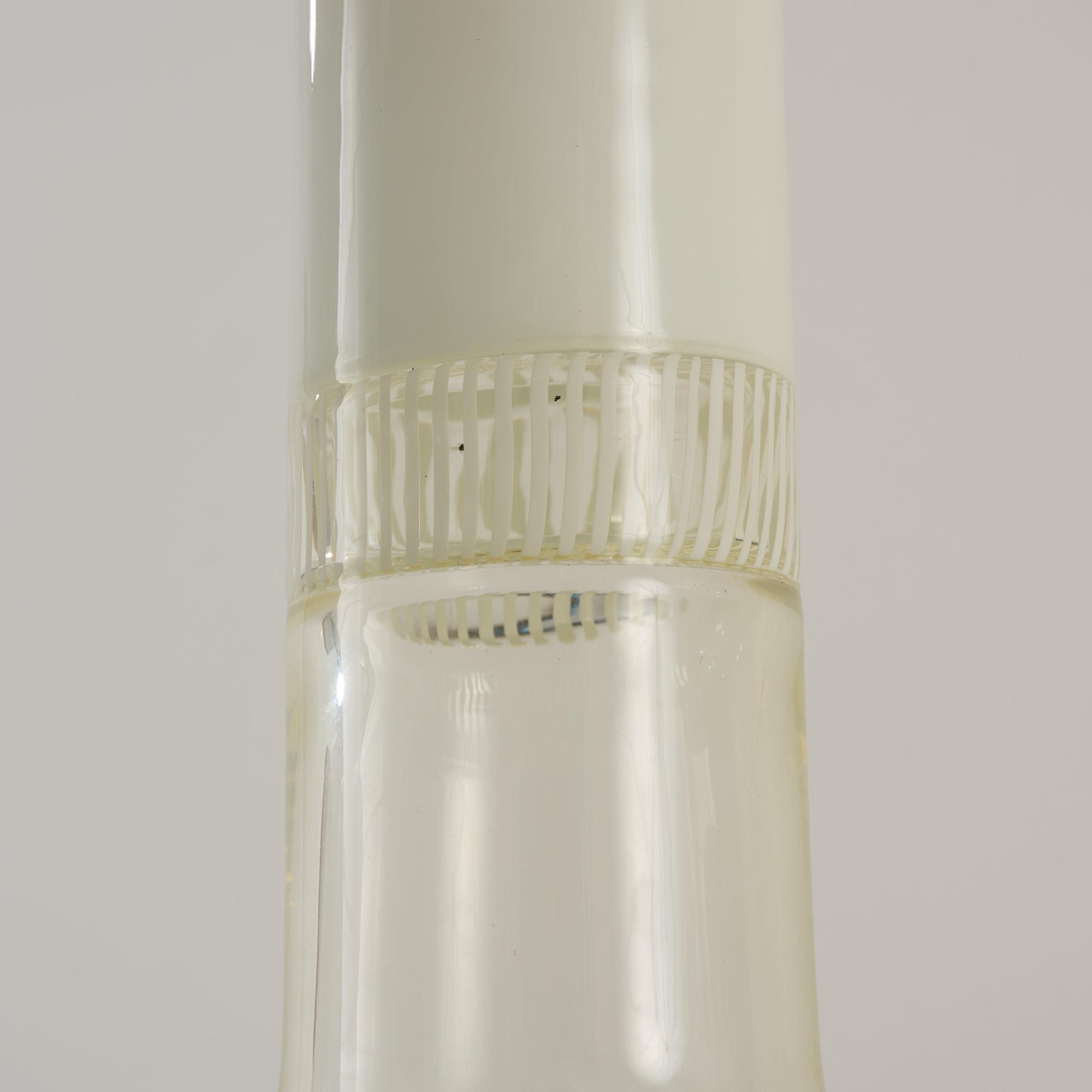 Colorless and opal white glass, plastic frame, sheet metal.