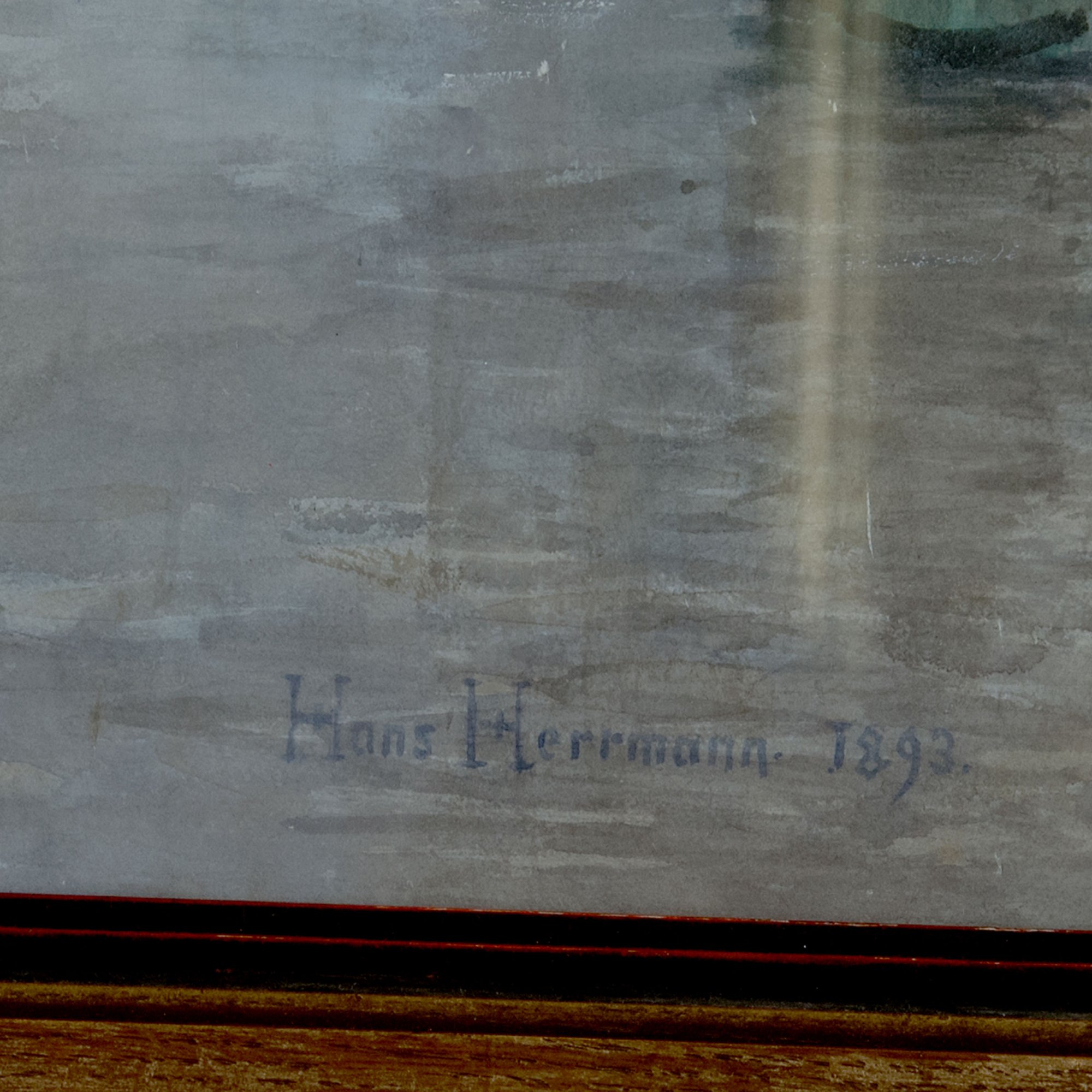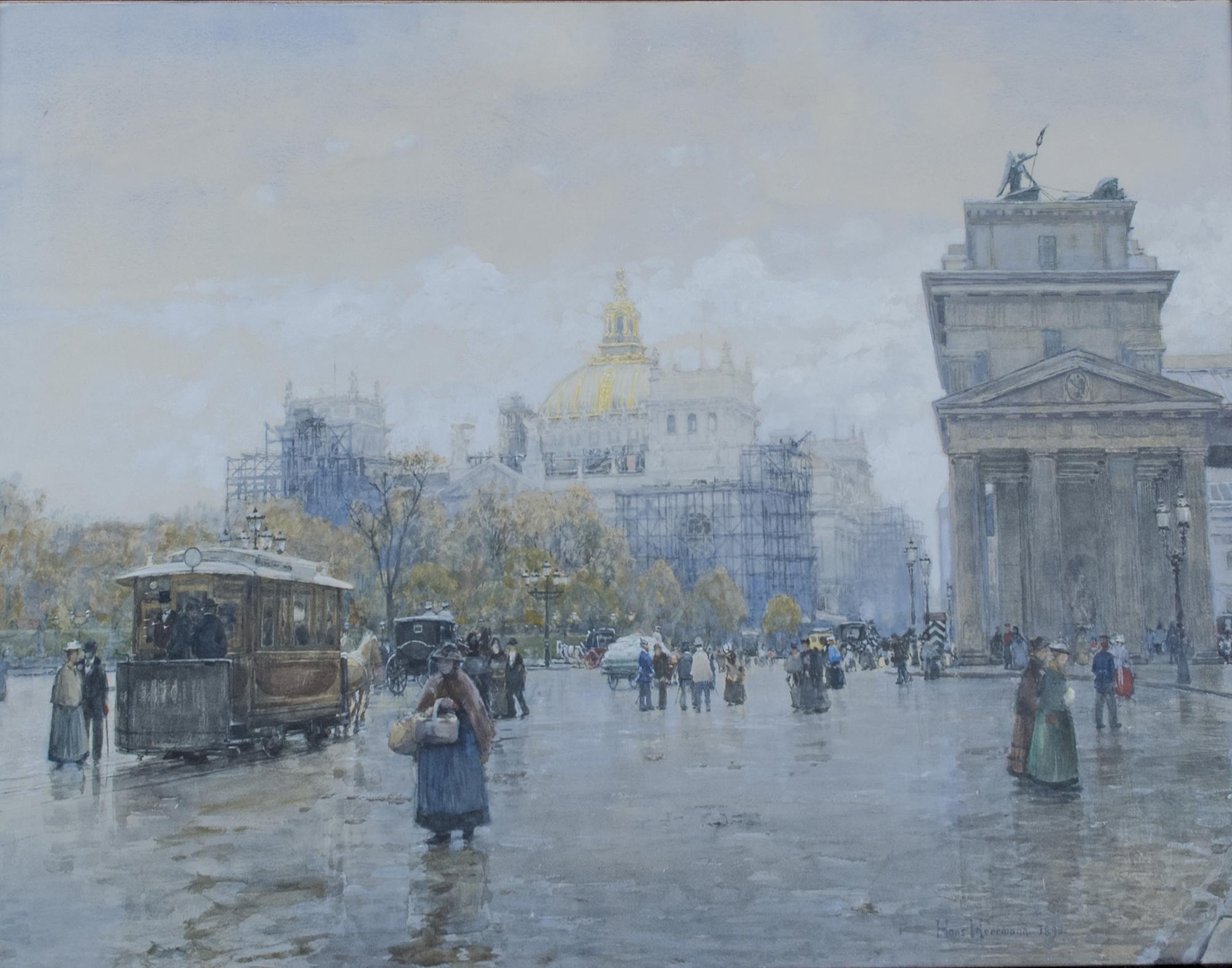 Hans Herrmann. 'View of the Reichstag building nearing completion', 1893. Watercolour on paper. 60.0 x 87.0 cm. Signed and dated: Hans Herrmann, 1893. Glass frame.