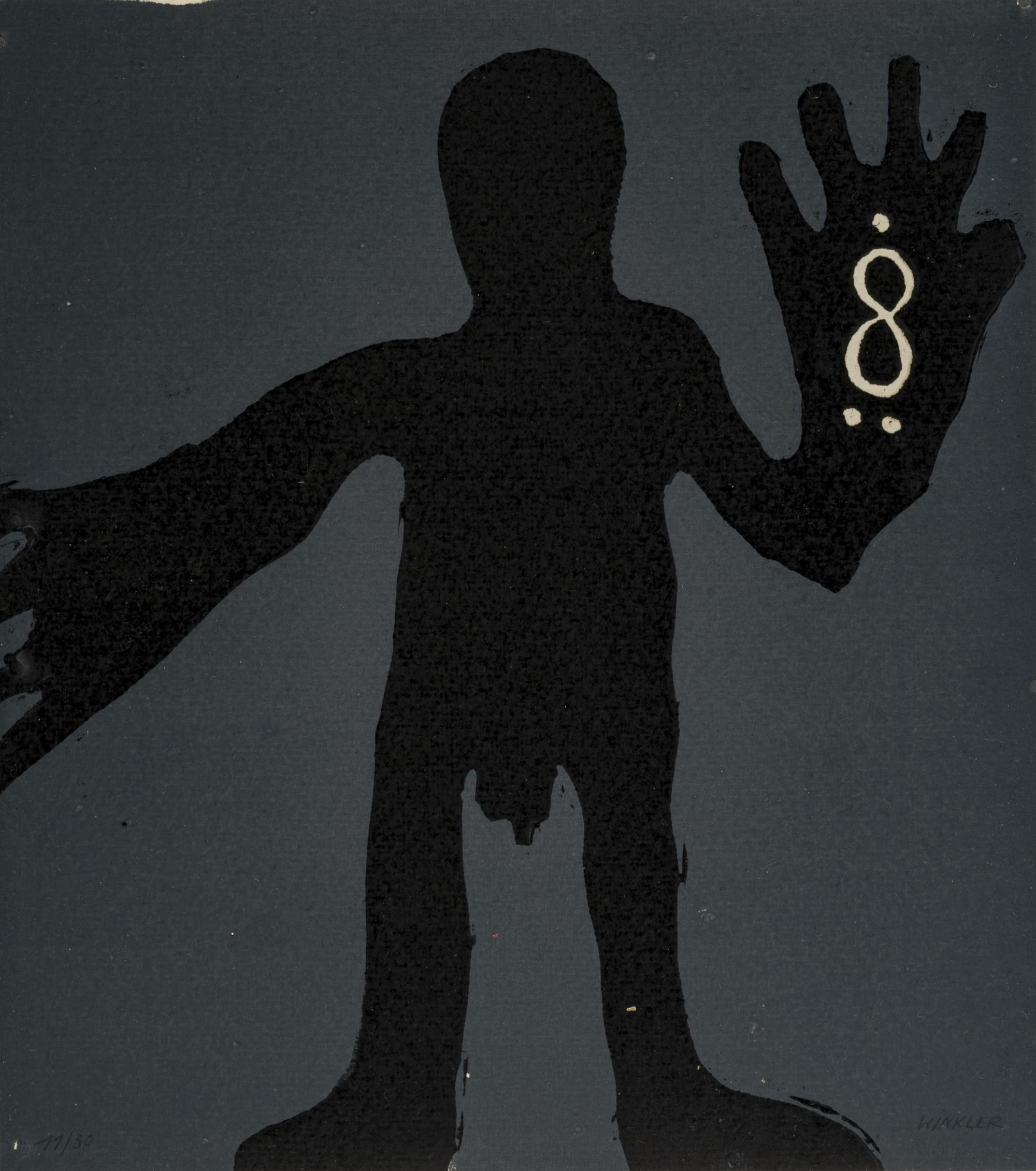 Linocut on paper. 29.8 x 26.5 cm. Numbered 11/30 lower left, signed Winkler (pencil) lower right. Copy 11 of 30 (each unique). Loose in a portfolio.