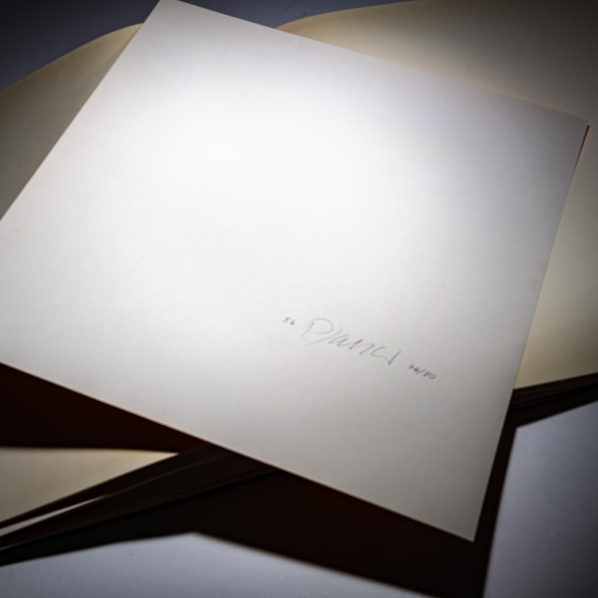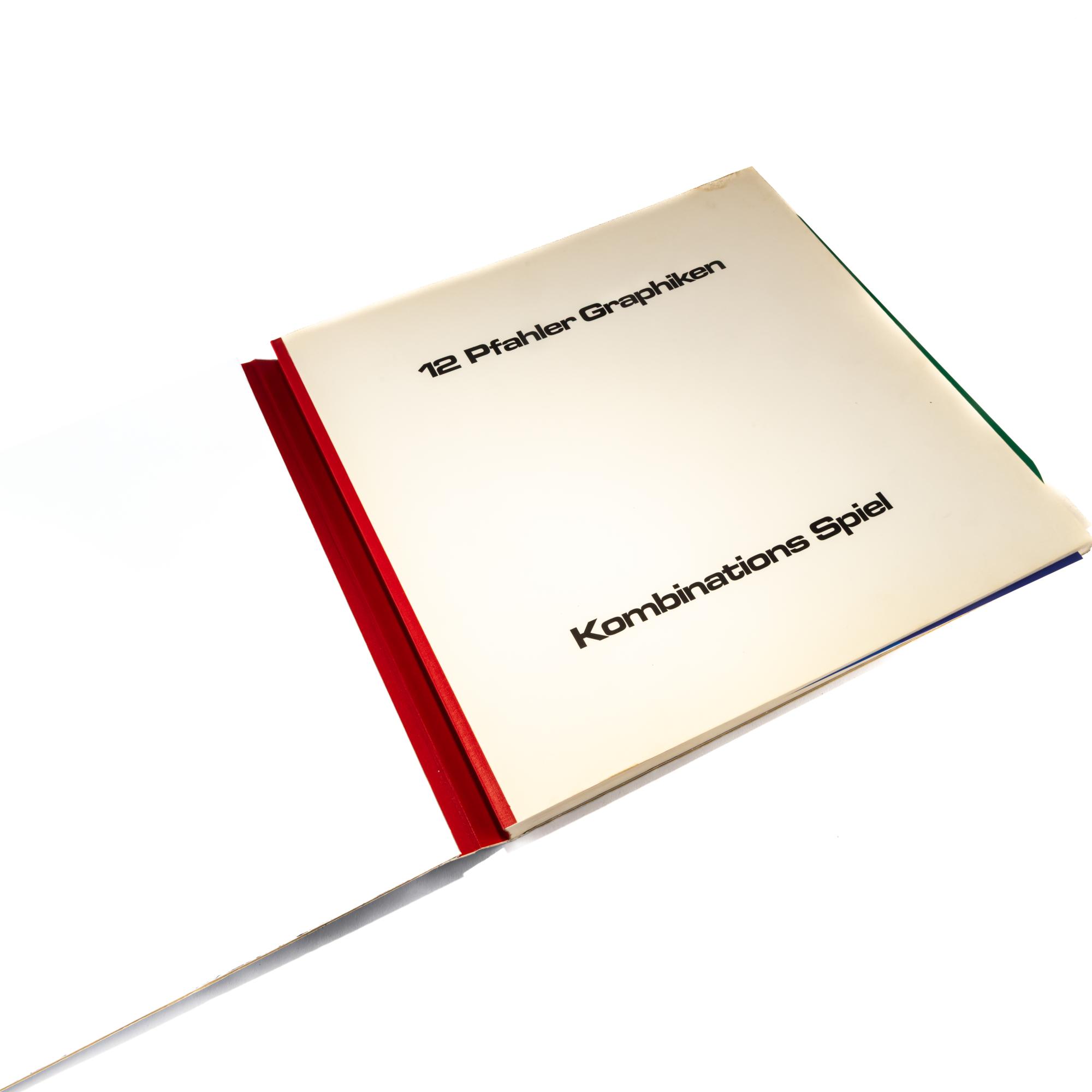 12 sheets of color serigraphs on paper. 34.7 x 34.7 cm (prints), 36.0 x 36.5 cm (portfolio). Each verso inscribed (1a - 6b), signed and numbered: Pfahler 76/80 (pencil), portfolio numbered on the endpaper: 76 (stamped). Published by Galerie Müller, Stuttgart; printed by Siebdruckerei Löw, Stuttgart.