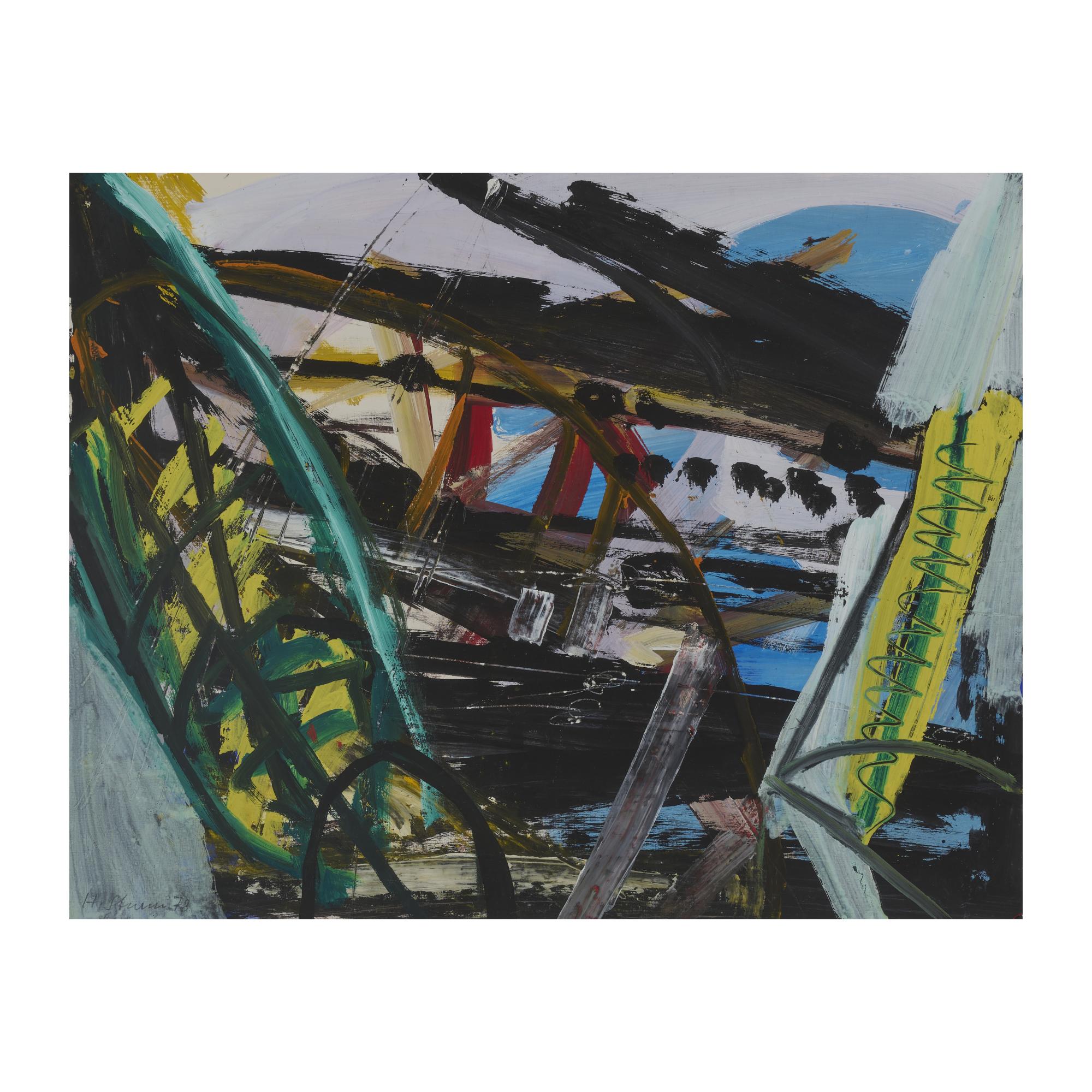 Gouache on cardboard. 55.0 x 70.6 cm (cardboard), 88.5 x 106.5 cm (frame). Signed lower left: H. Sturm and dated: (19)78 (pencil). Framed under glass in a passe-partout.