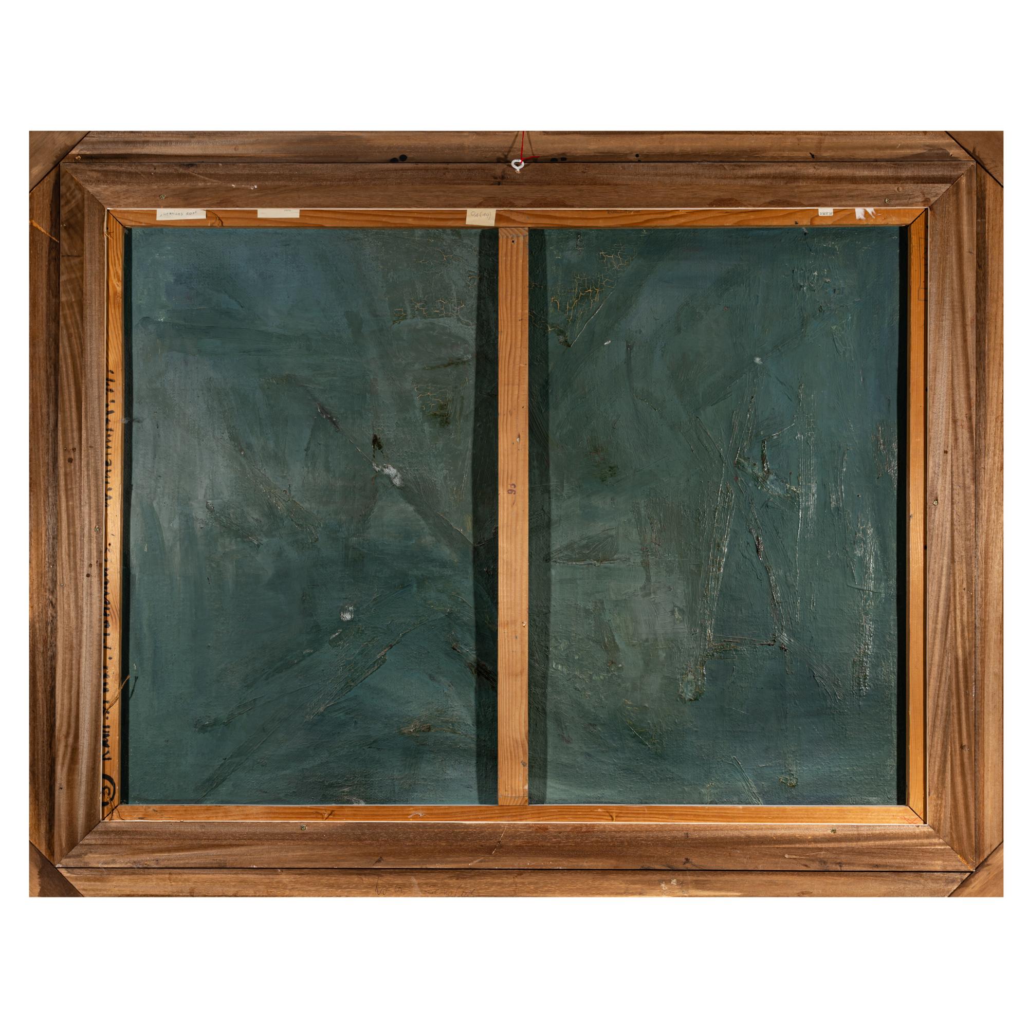 Oil on burlap. 98.0 x 130.0 cm (burlap), 119.0 x 125.0 cm (frame). Signed lower right: Brust and dated: (19)55 (oil). Titled on an adhesive label verso: Heftiges Rot (ballpoint pen) and inscribed on the stretcher. Framed.