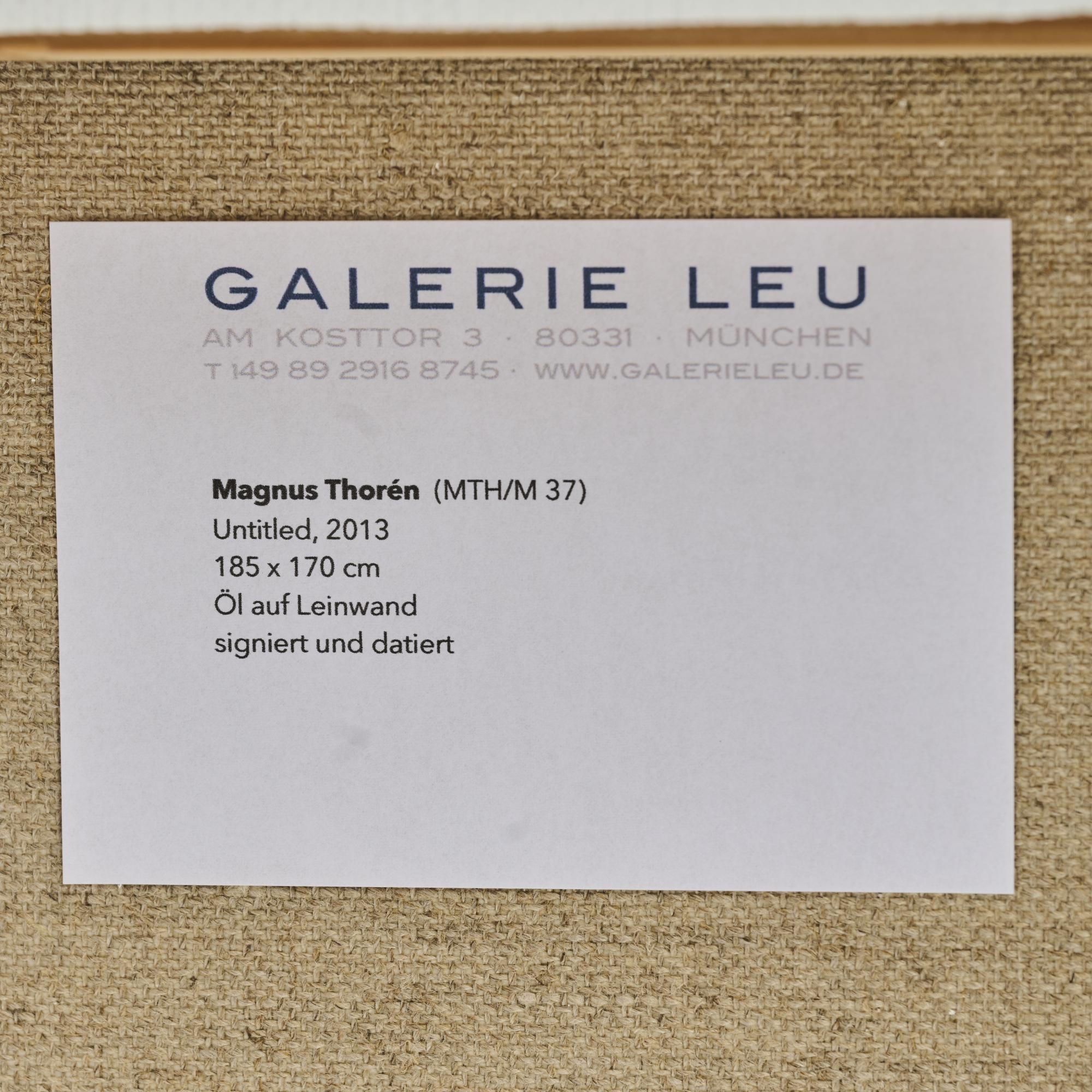 Oil on canvas. 185 x 170.5 cm. Signed, location and date verso on the canvas at the top: MAGNUS THOREN BERLIN 2013 (oil) and also typographically inscribed on an adhesive label of the Galerie Leu, Munich.