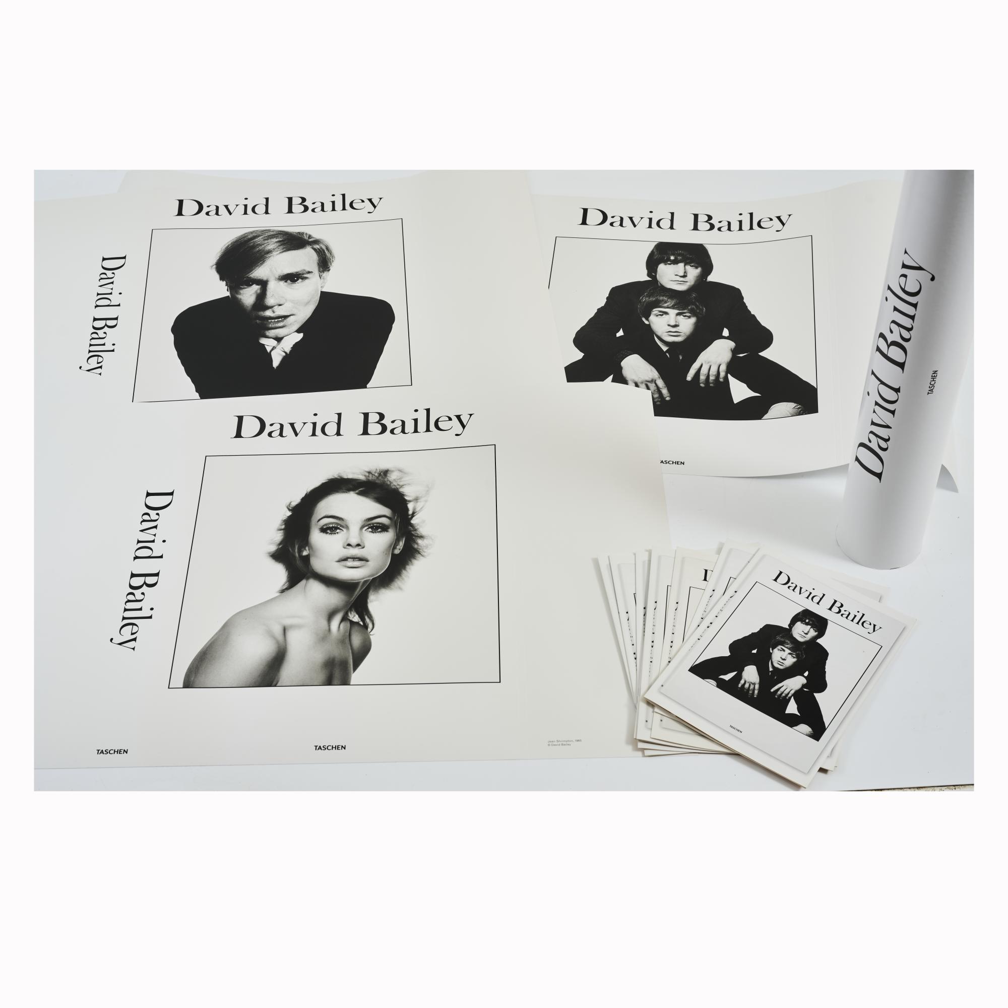 Sample edition no. 0000 with three additional, different dust jackets in the original roll and a matching book stand by Marc Newson. 71.5 x 52 cm (book), H. 93.0 x 78.0 x 82.0 cm (stand). Numbered on the third page: 0000 and signed in print: David Bailey. Copies outside the edition: Art Edition no. 1 - 300 with a signed gelatin silver print each / Collector's Edition no. 301 - 3000. Hardcover with 440 pages, published by Taschen Verlag Cologne, 2019.