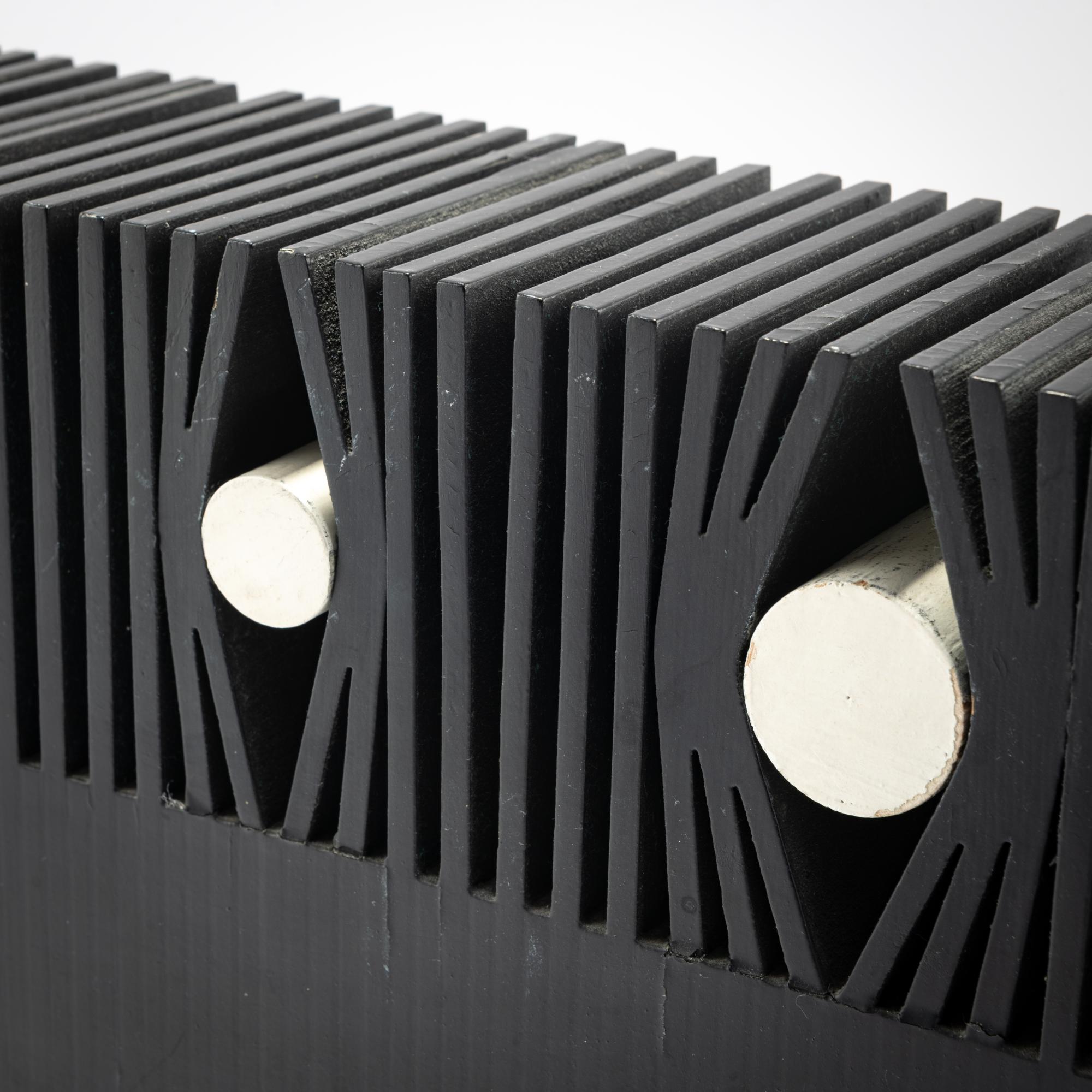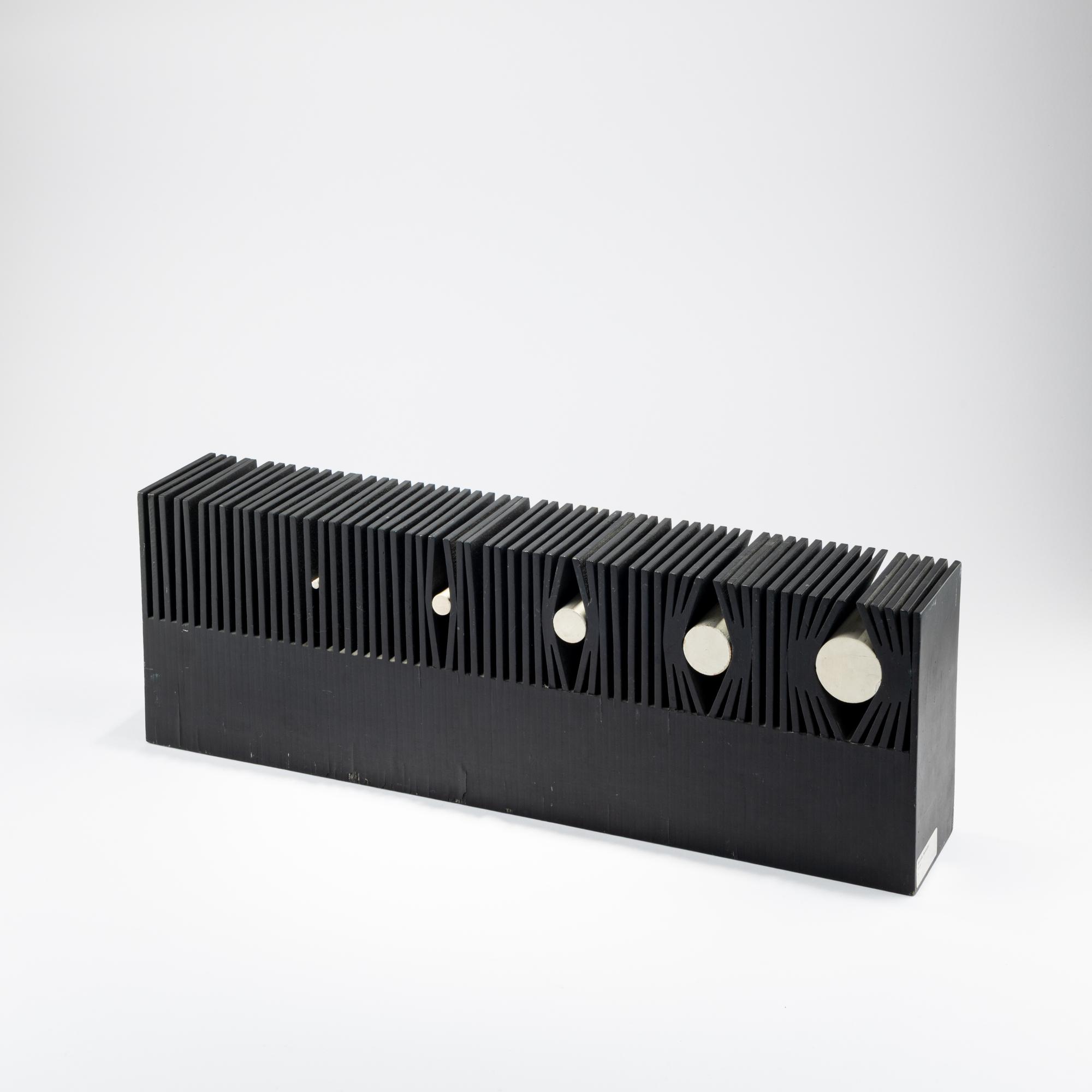 Wood, lacquered black and white. H. 20.0 x 60.5 x 10.0 cm. Titled on a silver manufacturer's label: TENSIONE, numbered: 19-50, and signed: M. Morandini (incised). Copy 19 of 50 copies.