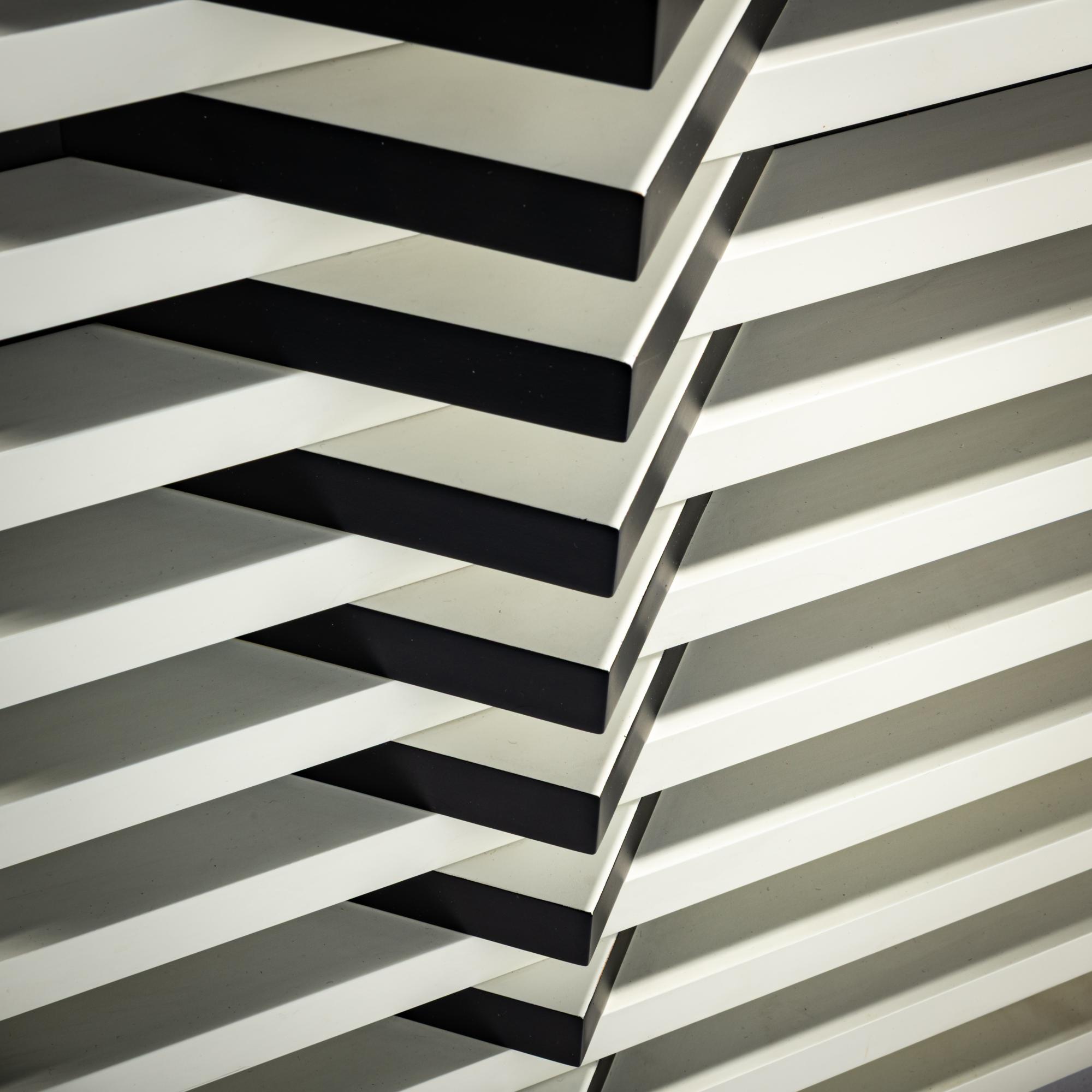Wood, lacquered black and white. H. 50.0 x 50.0 x 10.0 cm. Signed three times verso of the work and on an adhesive label: M. Morandini, inscribed and numbered: 2-3.