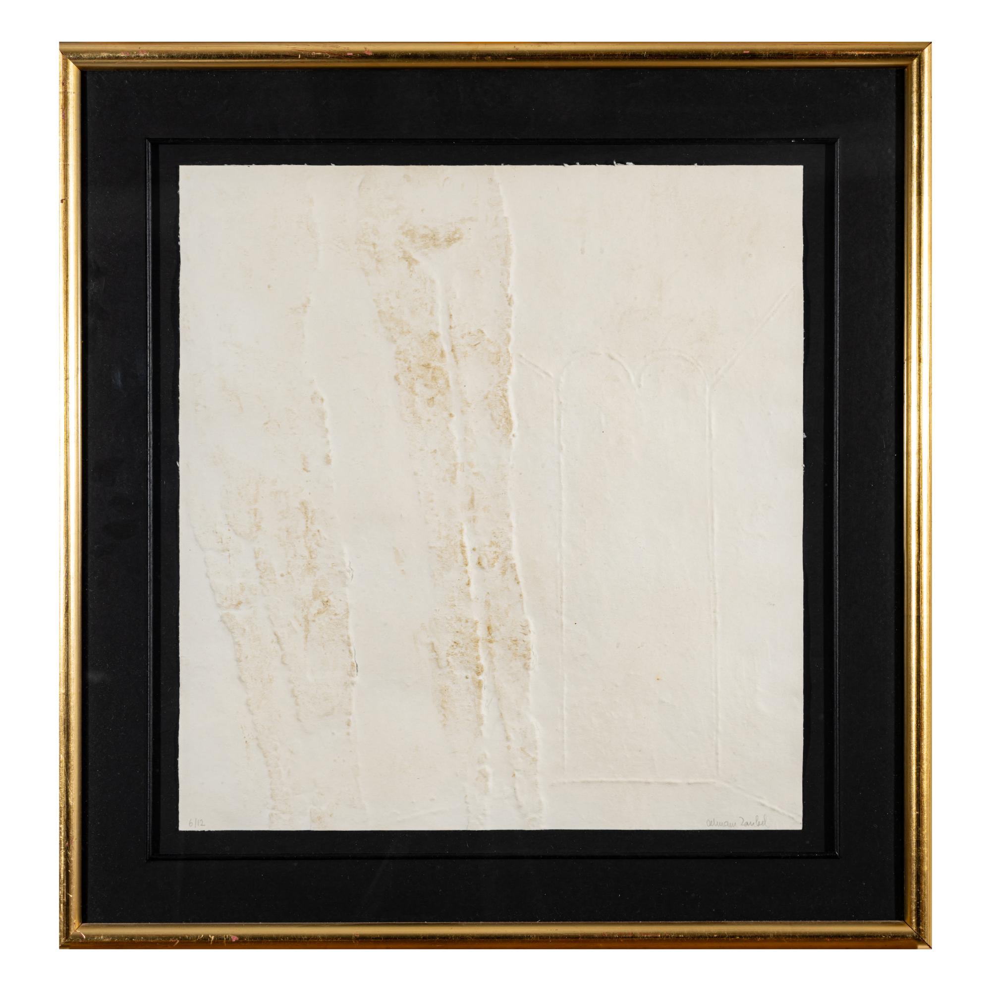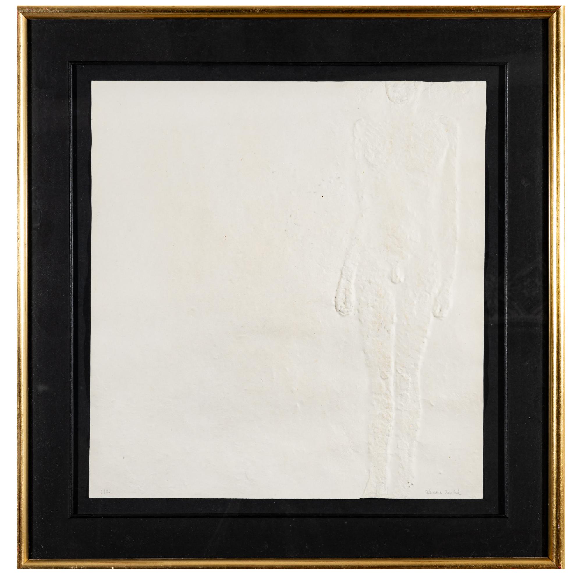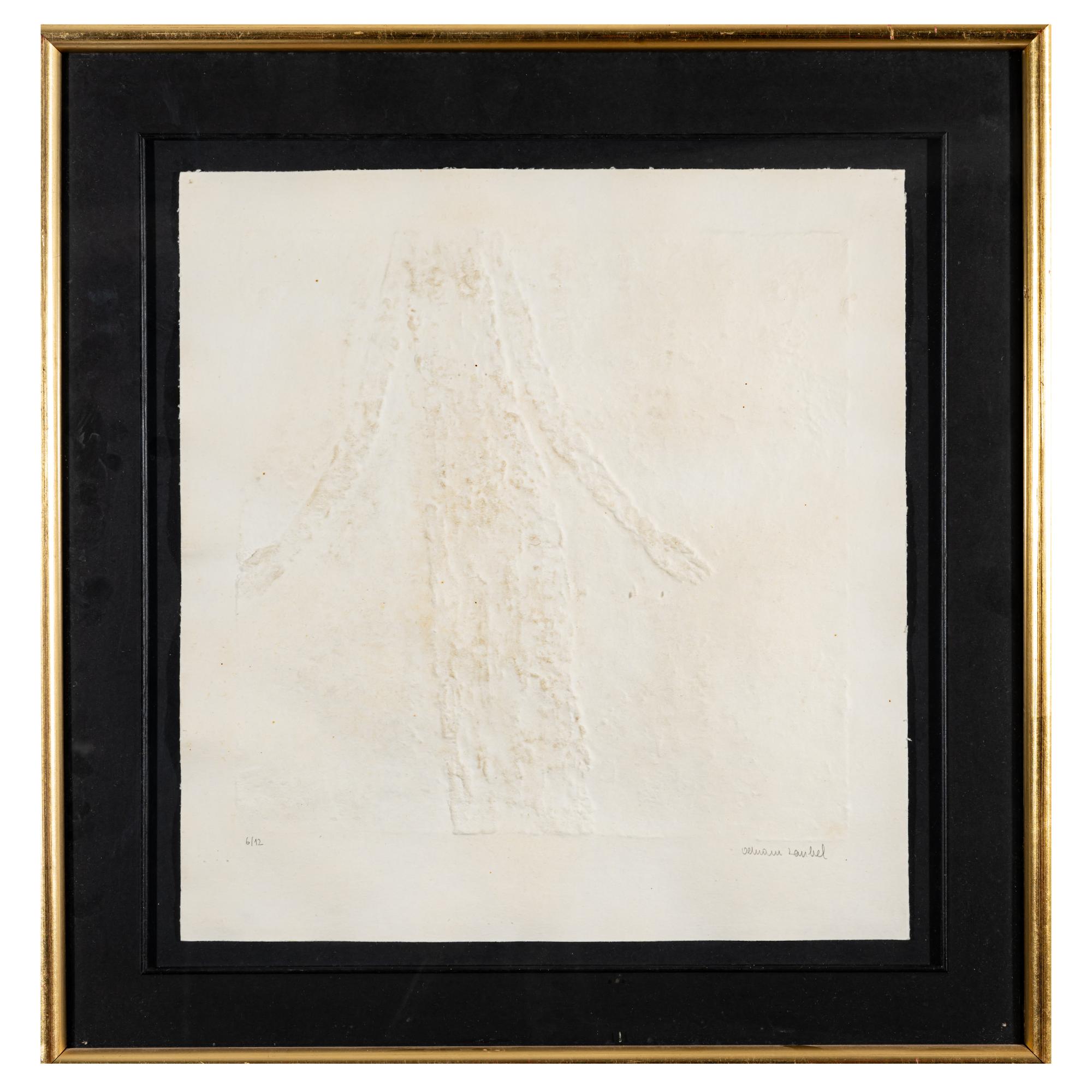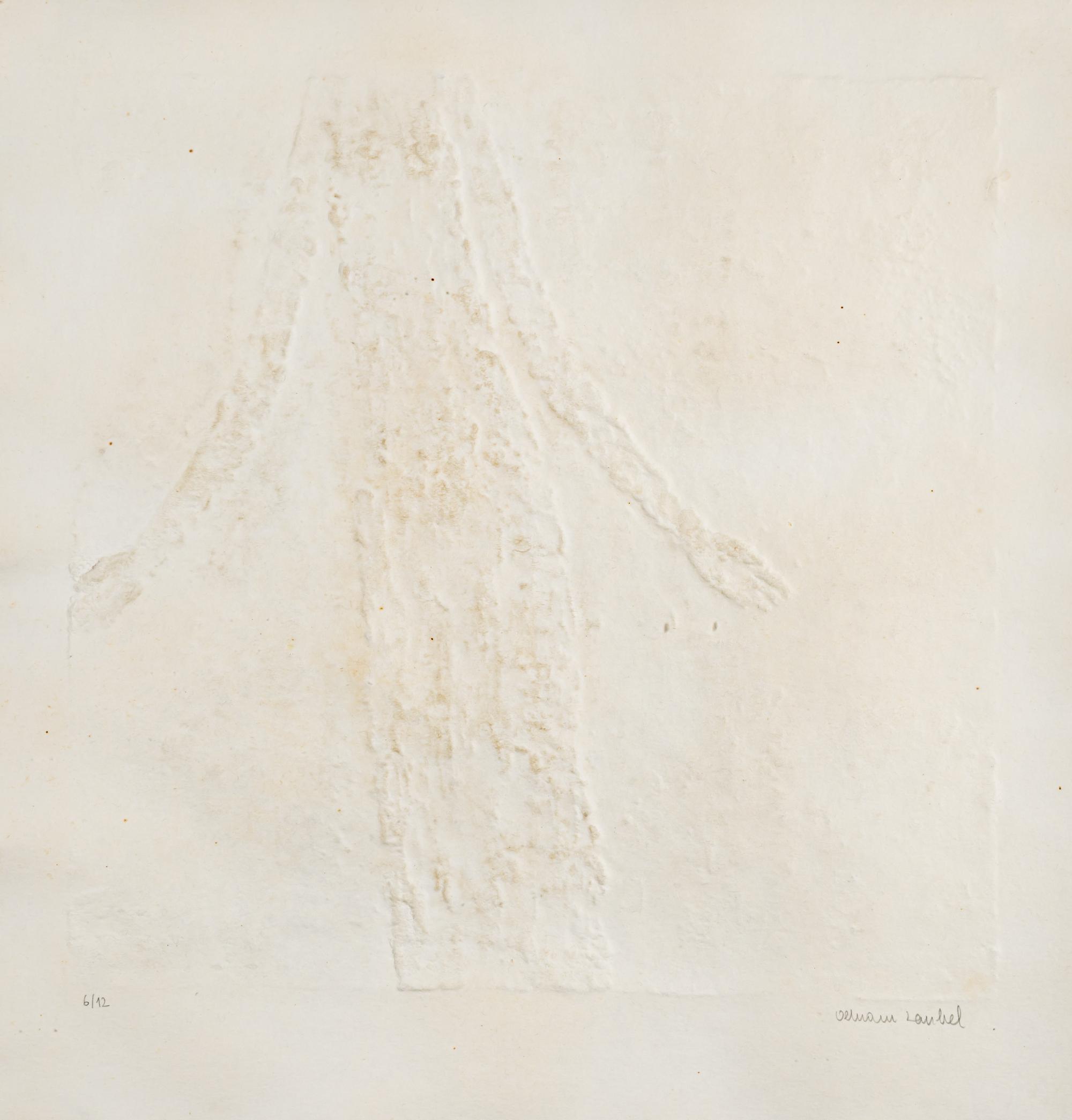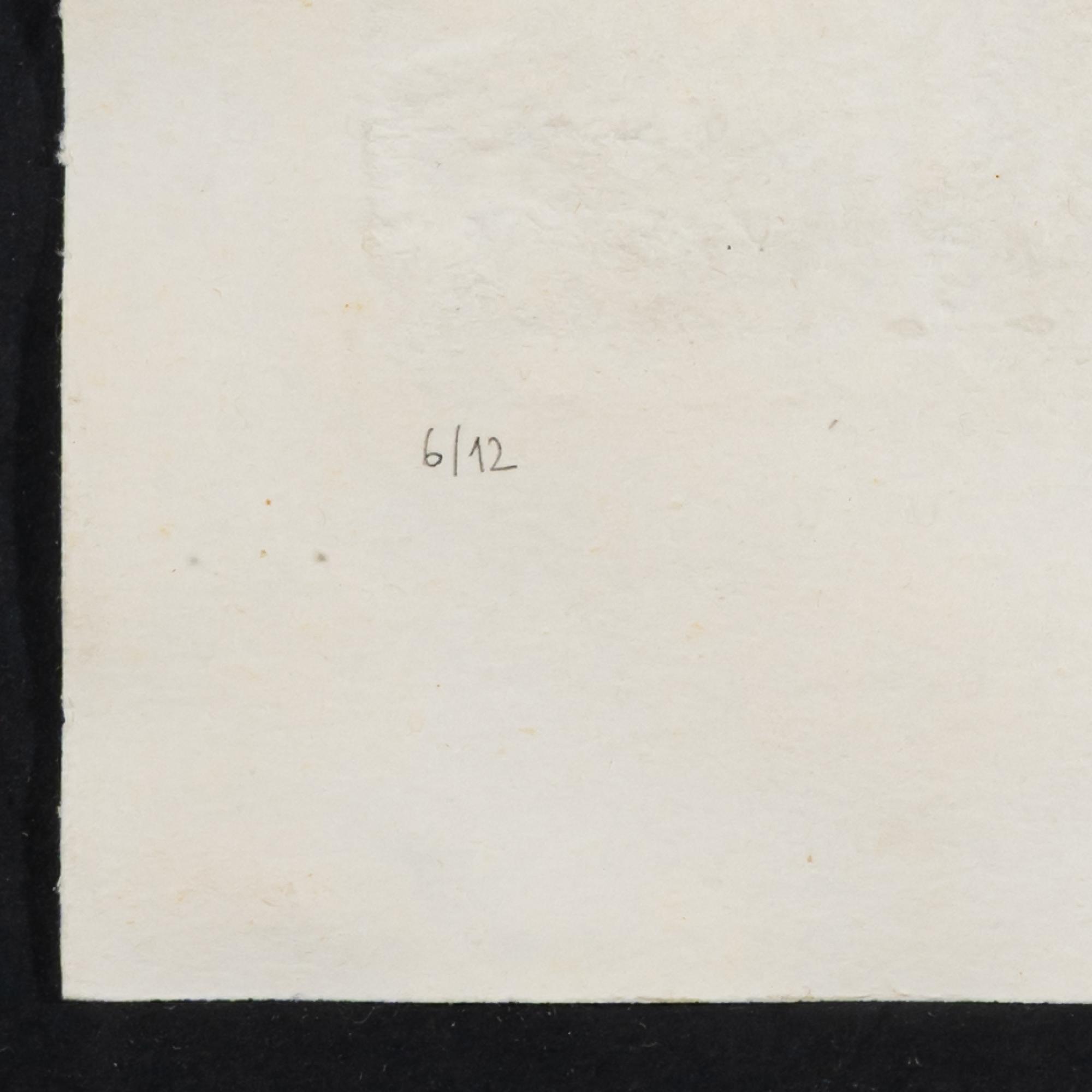 3 sheets relief print on laid paper, partly with gold pigments. Each approx. 44.0 x 42.0 cm (sheet), 61.5 x 59.5 cm (frame). Each numbered lower left: 6/12 and signed lower right: Olbram Zoubek (pencil). Each copy 6 of 12 copies. Each framed under glass in a passe-partout.