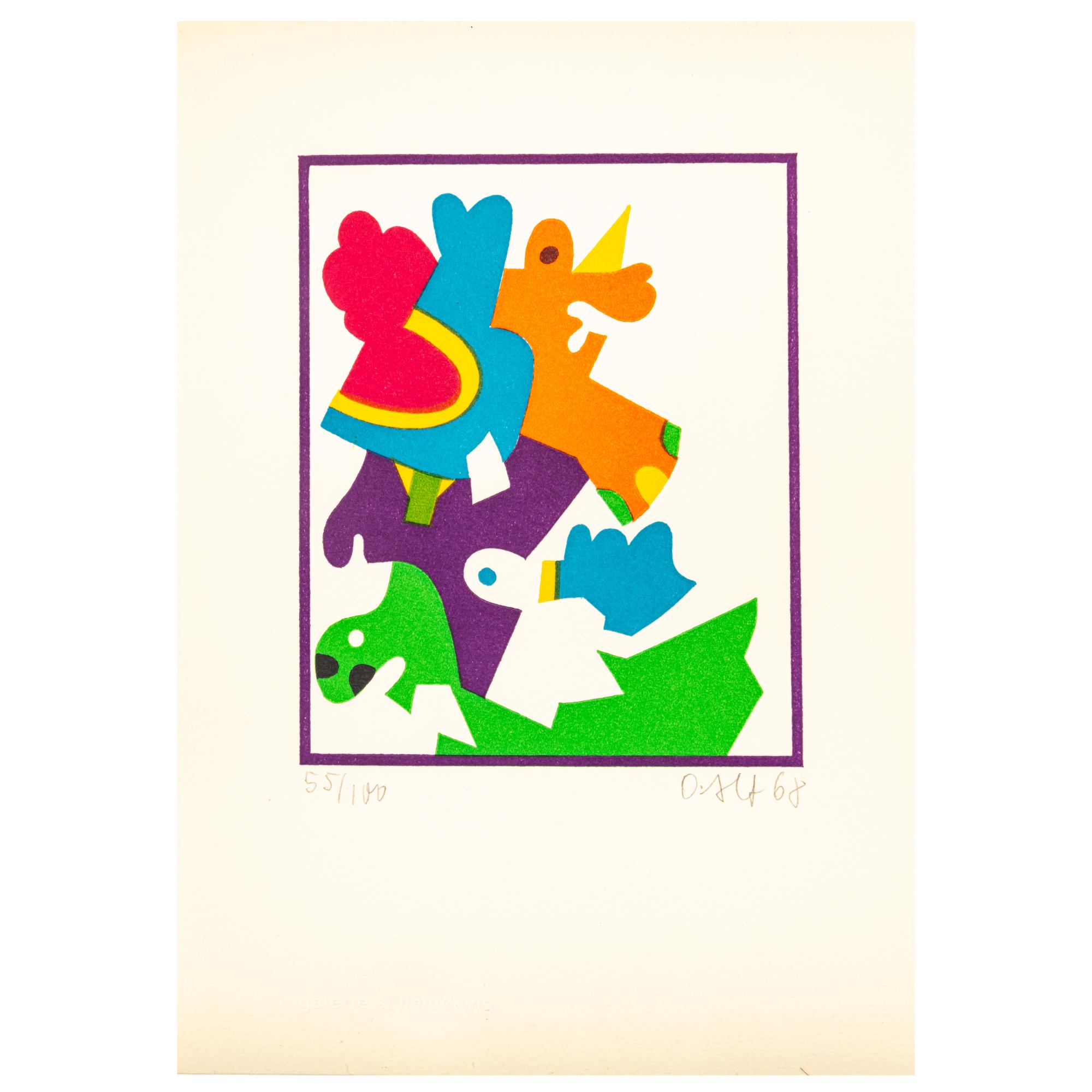 11 sheets of color linocut on paper. Each 30.0 x 21.5 cm (sheet). Each numbered 55/100 lower left and signed and dated lower right: O. Alt (19)68 (pencil) and blind stamp: galerie schmücking. Each copy is 55 of 100 copies. A publication of the same name with color reproductions of the linocuts. 25.1 x 20.1 cm. Signed in the colophon: Otmar Alt and numbered 55 (pencil). Published by Galerie Schmücking, Braunschweig.