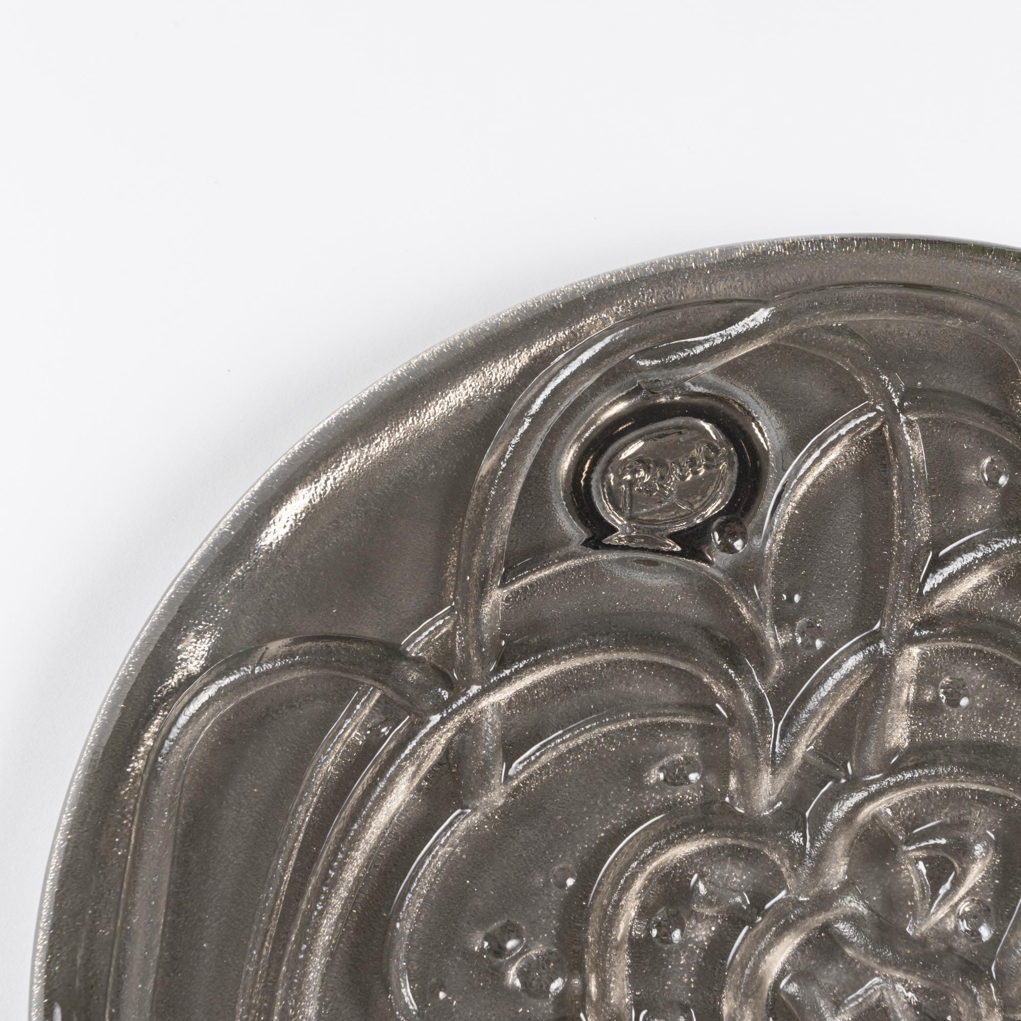 Two New Year's plates in glass, platinum and gold. Each Ø 36.5 cm. Signed in a cartouche on the upper margin: Piene, inscribed on the lower margin: Jahresteller Rosenthal in Glas 1974 and numbered. No. 52 (platinum) and no. 236 (gold) from an edition of 1000 copies each.