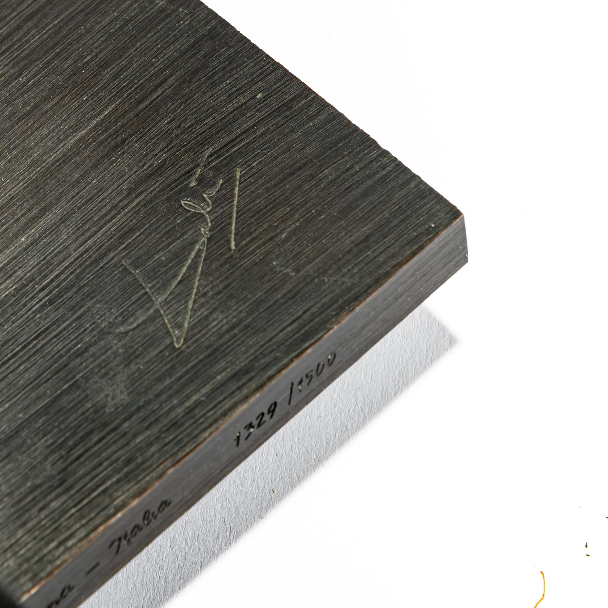 Bronze, dark brown patina, partly polished. H. 56.5 x 27.5 x 9.5 cm. Stamped on the side of the plinth: EURO ART / Fuso della Venturi Arte Bologna-Italia and numbered: 1329/1500, signed at the top of the plinth: Dalí (engraved). Published by Euro Art, Vienna; cast by Venturi Arte, Bologna as copy 1329 of 1500 copies.