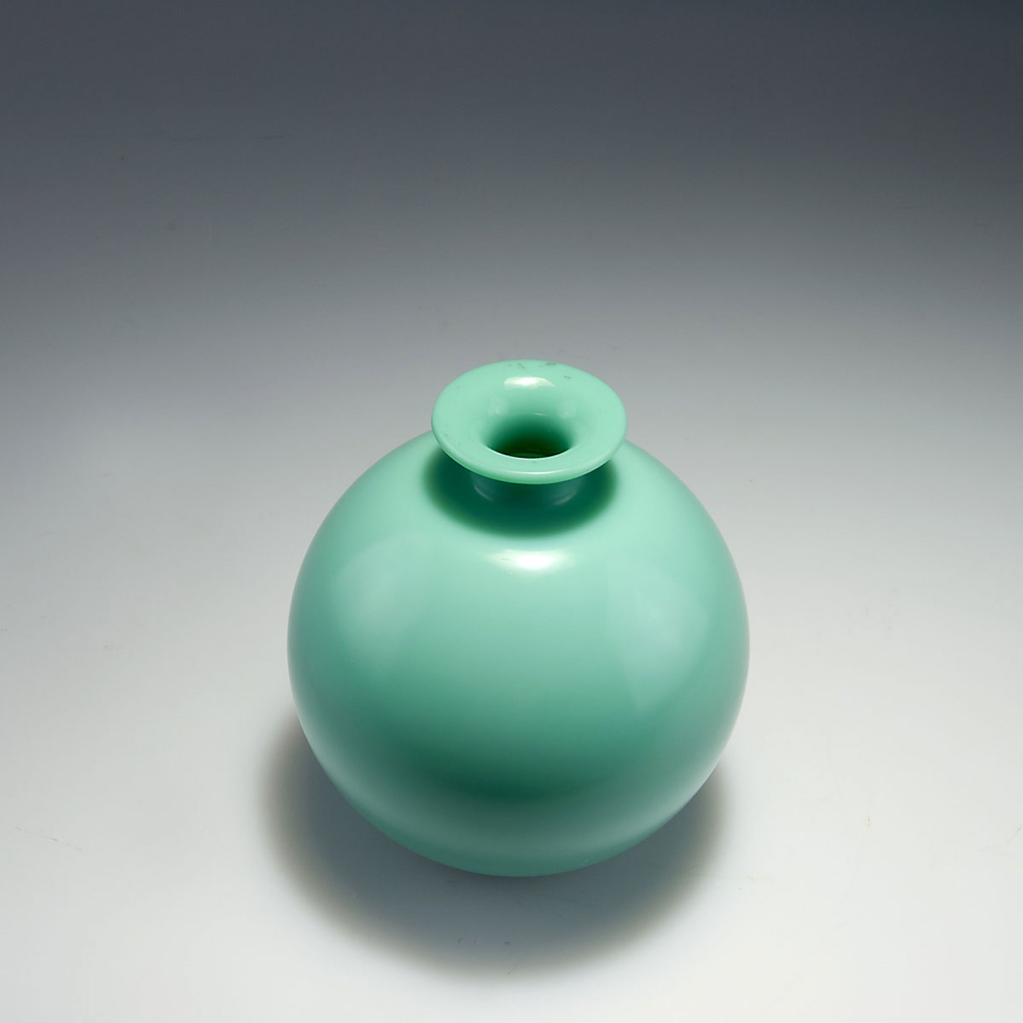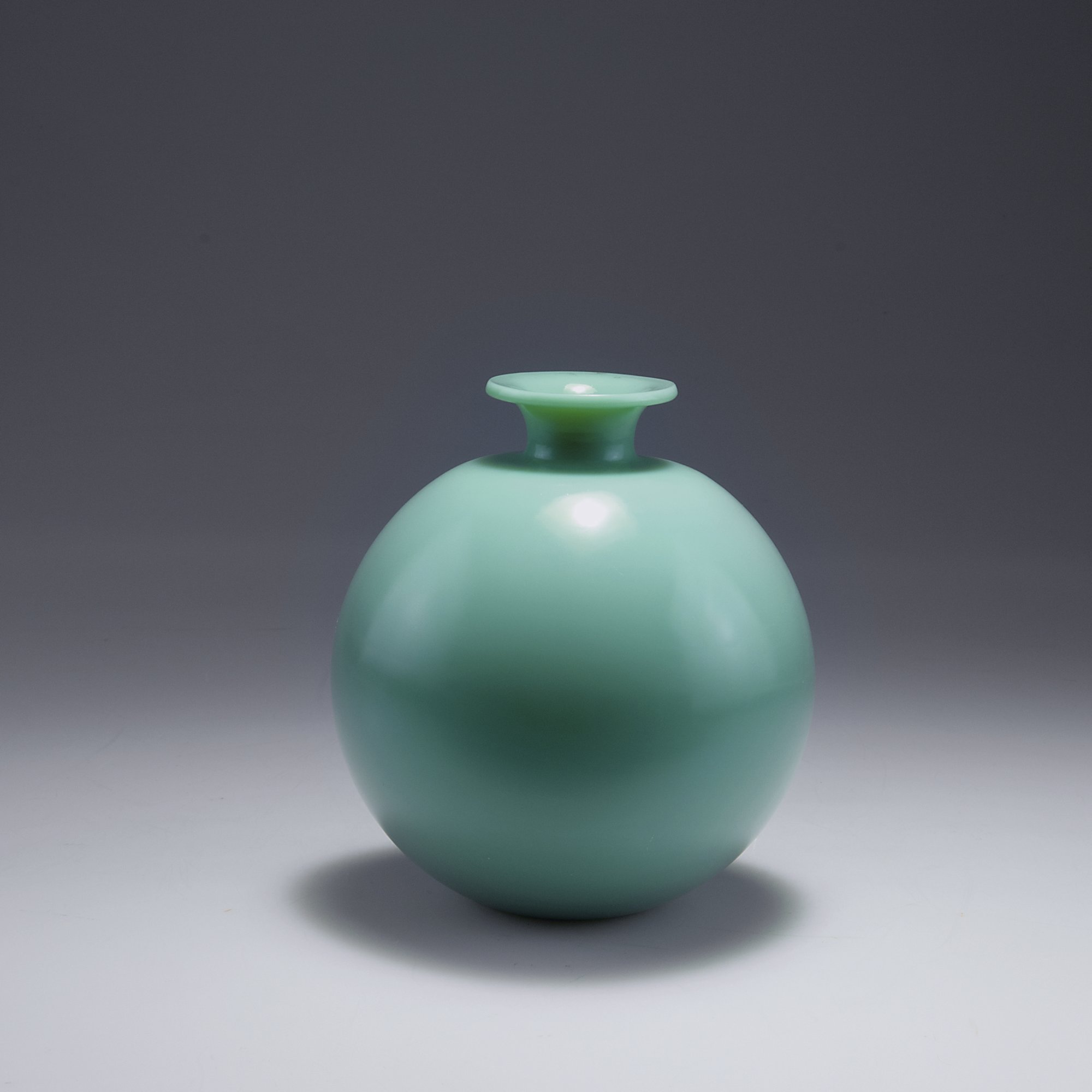 Napoleone Martinuzzi (in the style of). Vase, 1930s. H. 18 cm. Green glass ('Pasta vitrea'), slightly iridescent.