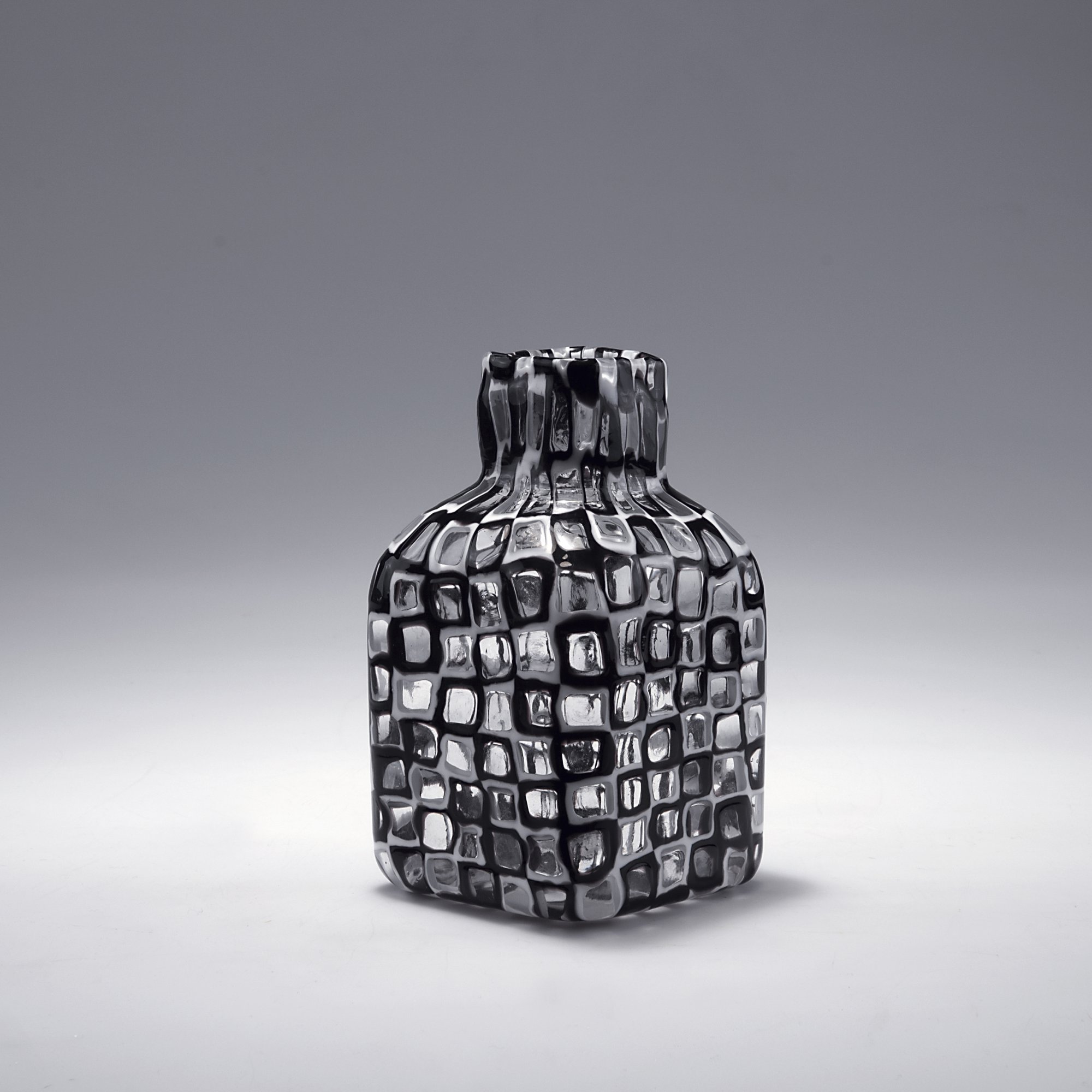 Tobia Scarpa. 'Occhi' vase, 1959/60. H. 17.5 cm. Made by Venini & C. Fused murrhines of white resp. black glass with clear core.