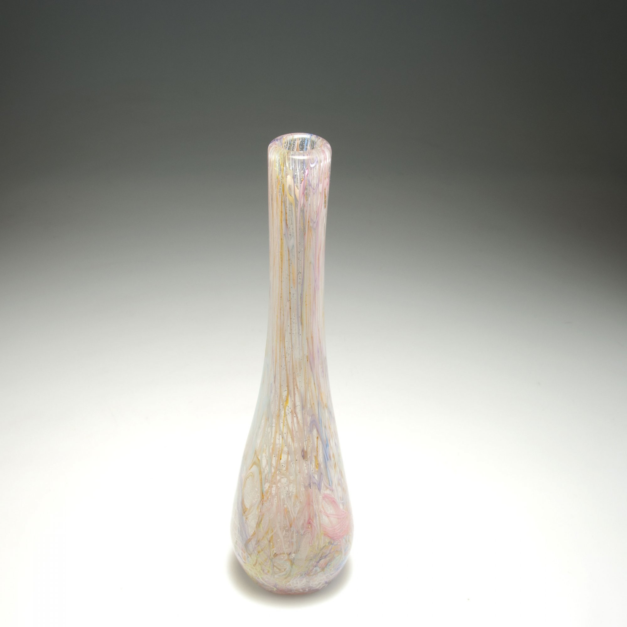 A.Ve.M. (attributed). 'Zanfirico e argento' vase, c1955. H. 36.6 cm. Cased glass, clear and milk white, polychromatic threads and burst silver foil.