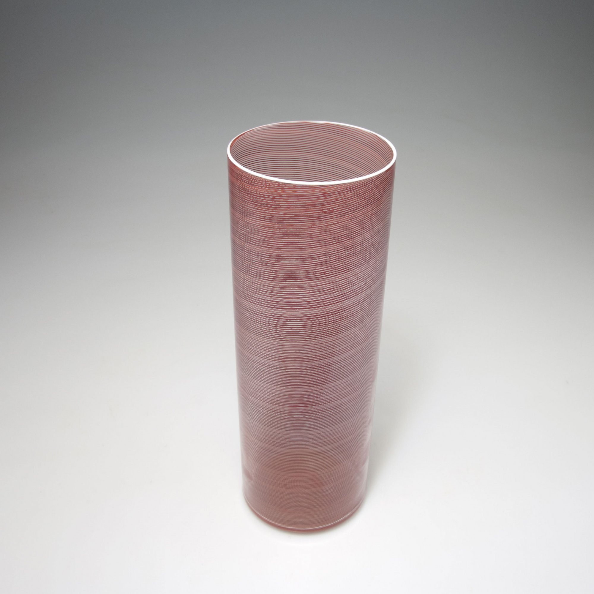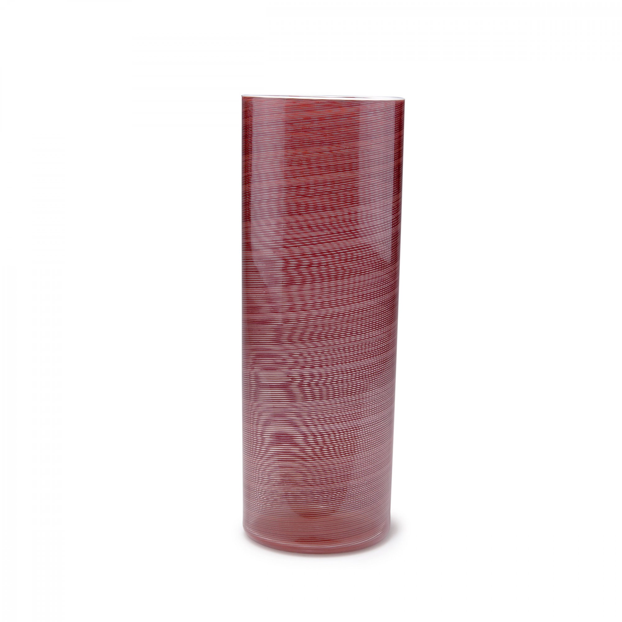 Barovier & Toso. 'Filigrana' vase, c1980. H. 30 cm. Clear glass, applied red thread, white rim. Marked: barovier e toso murano (engraved).