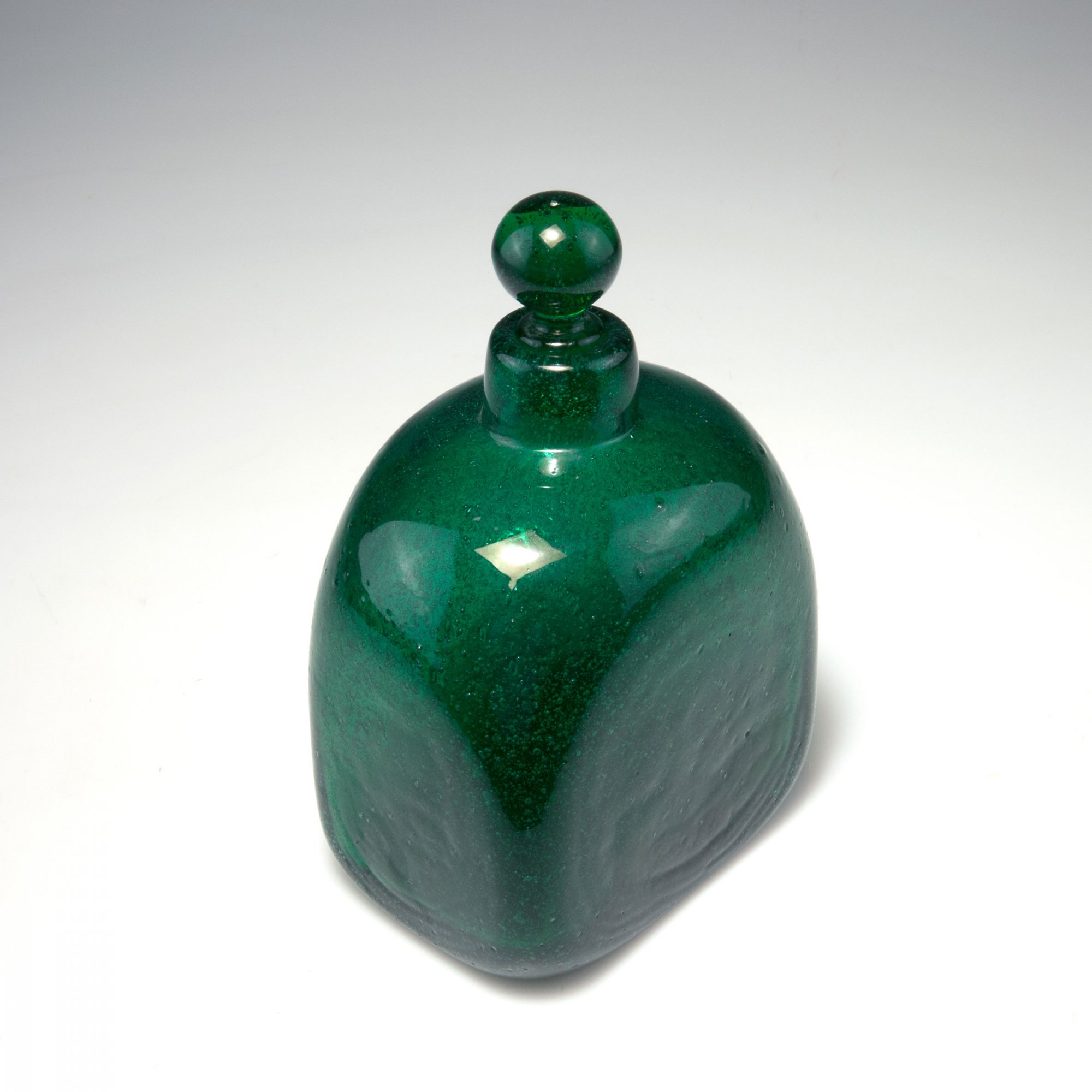 Carlo Scarpa (attributed). 'A bollicine' bottle and stopper, c1932. H. 20 cm. Made by Venini & C. Bubbly green glass. Marked: venini murano (acid stamp).