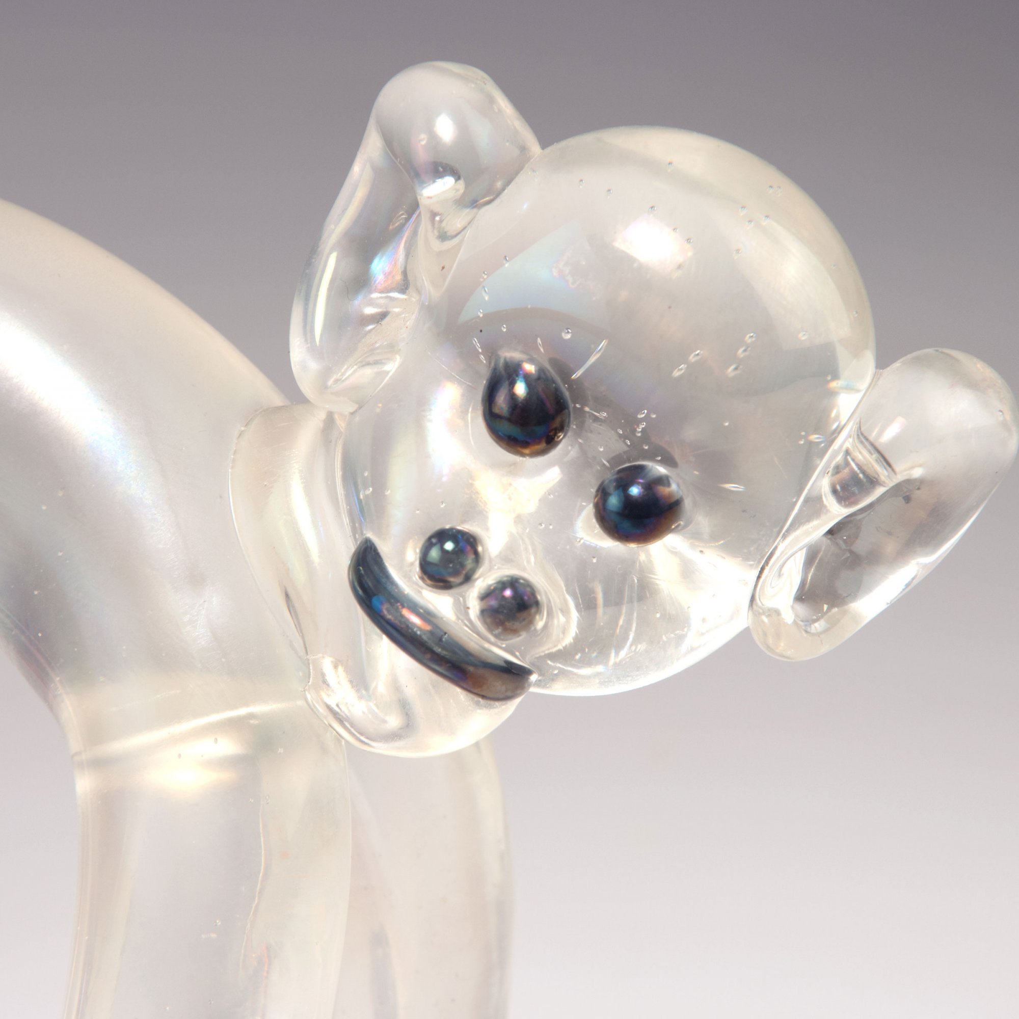 Ercole Barovier. Monkey, 1930. H. 23 cm. Made by Vetreria Artistica Barovier & C. Glass, clear and dark purple, iridescent.