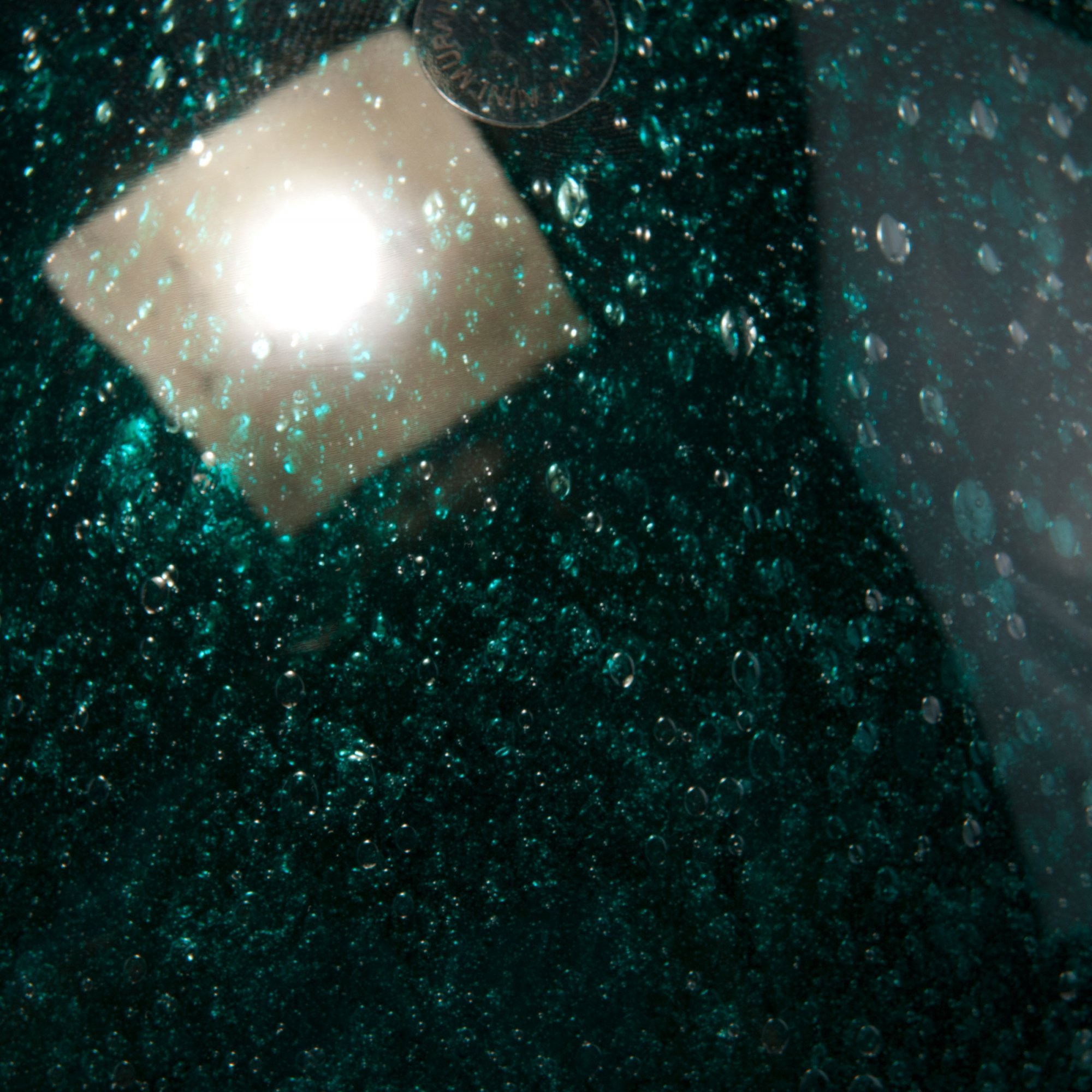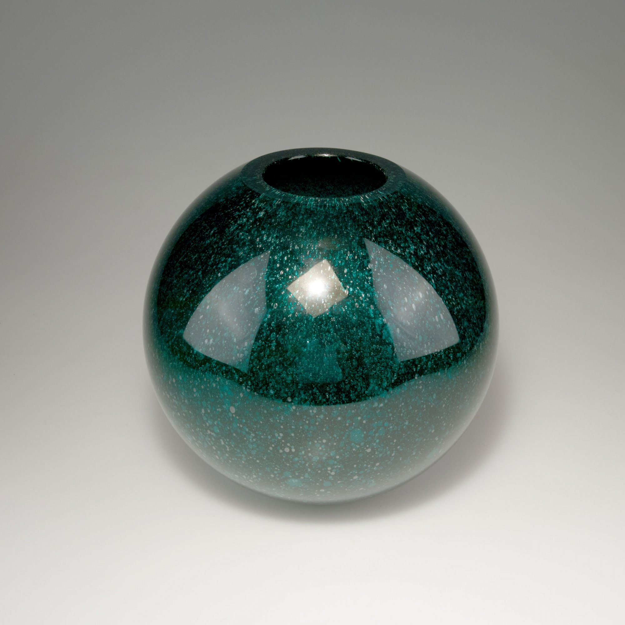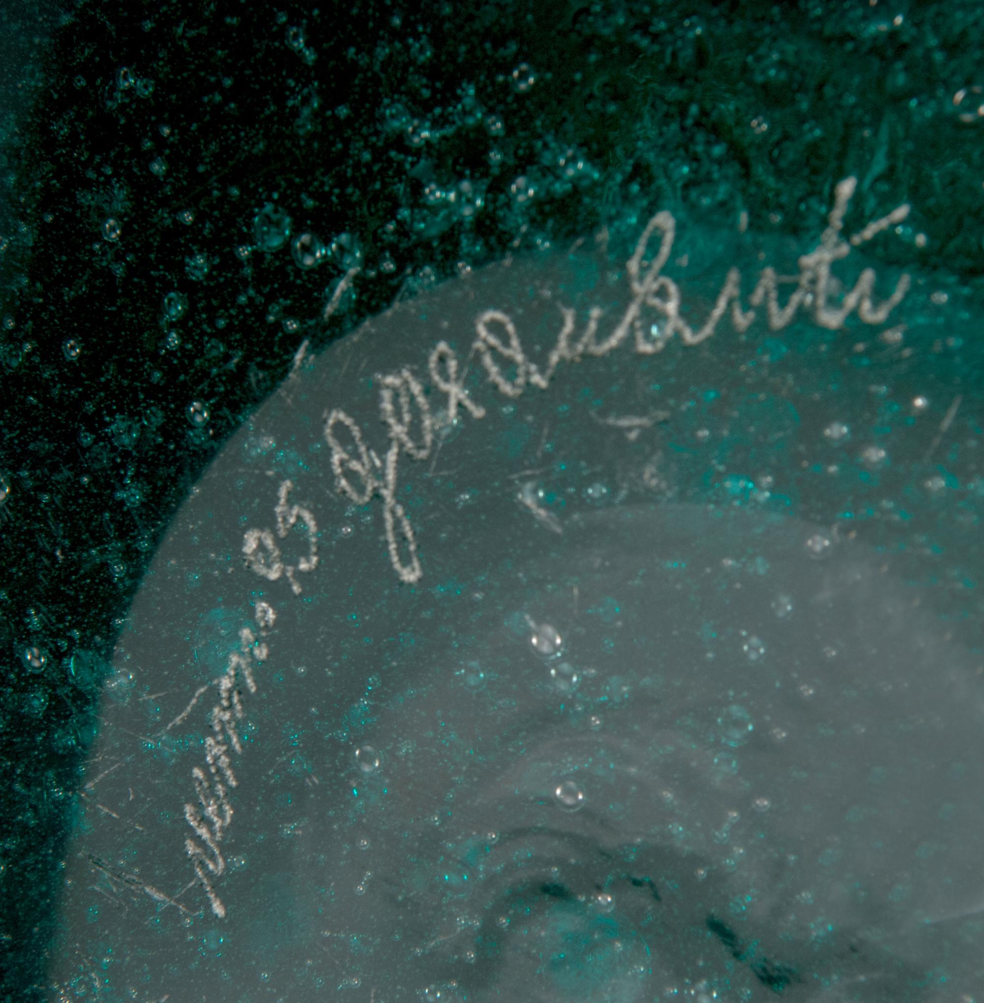 Gae Aulenti. Vase, c1995. H. 29 cm. Made by Venini & C., in 1995. Cased glass, clear and green, air bubbles. Marked: venini 95 Gae Aulenti (engraved).