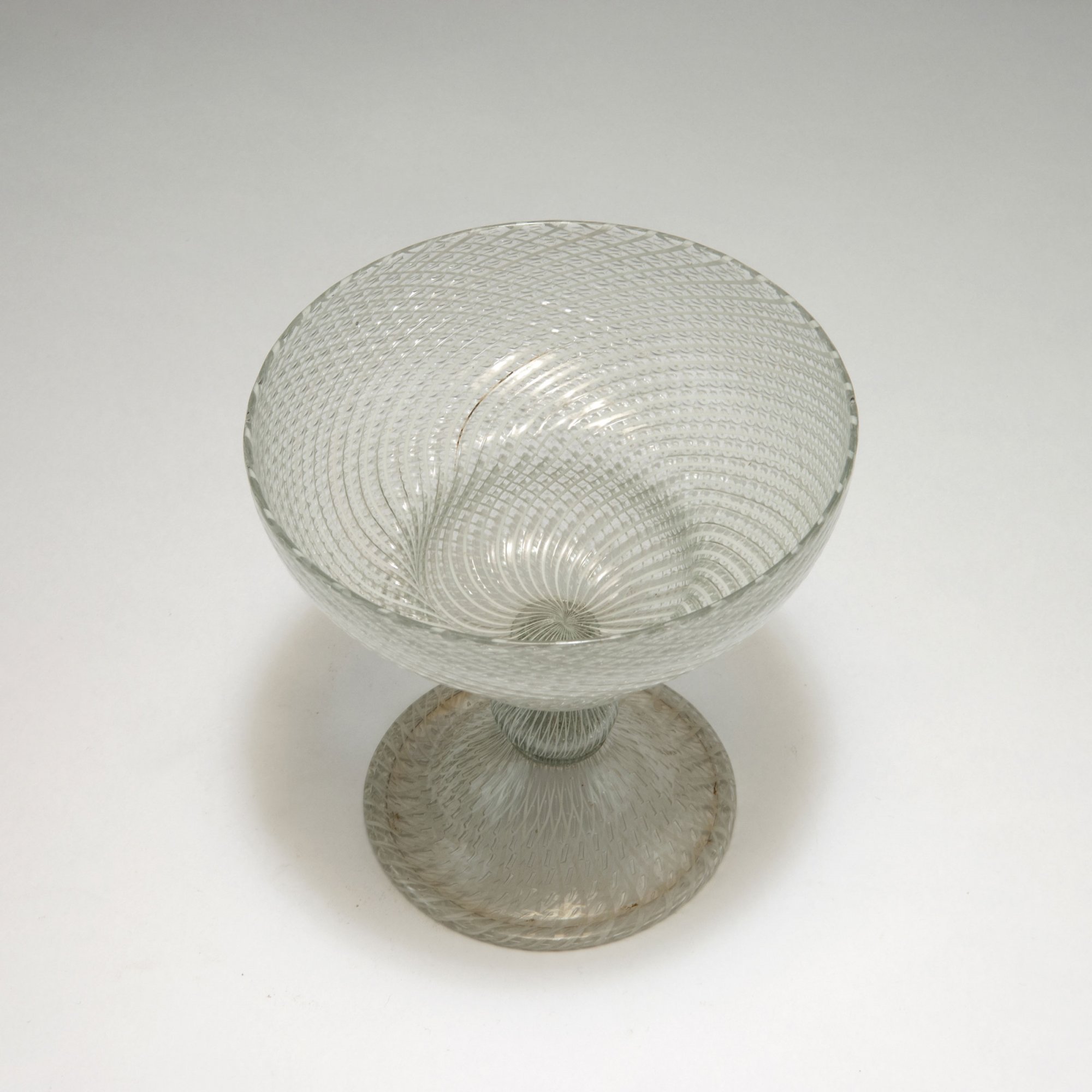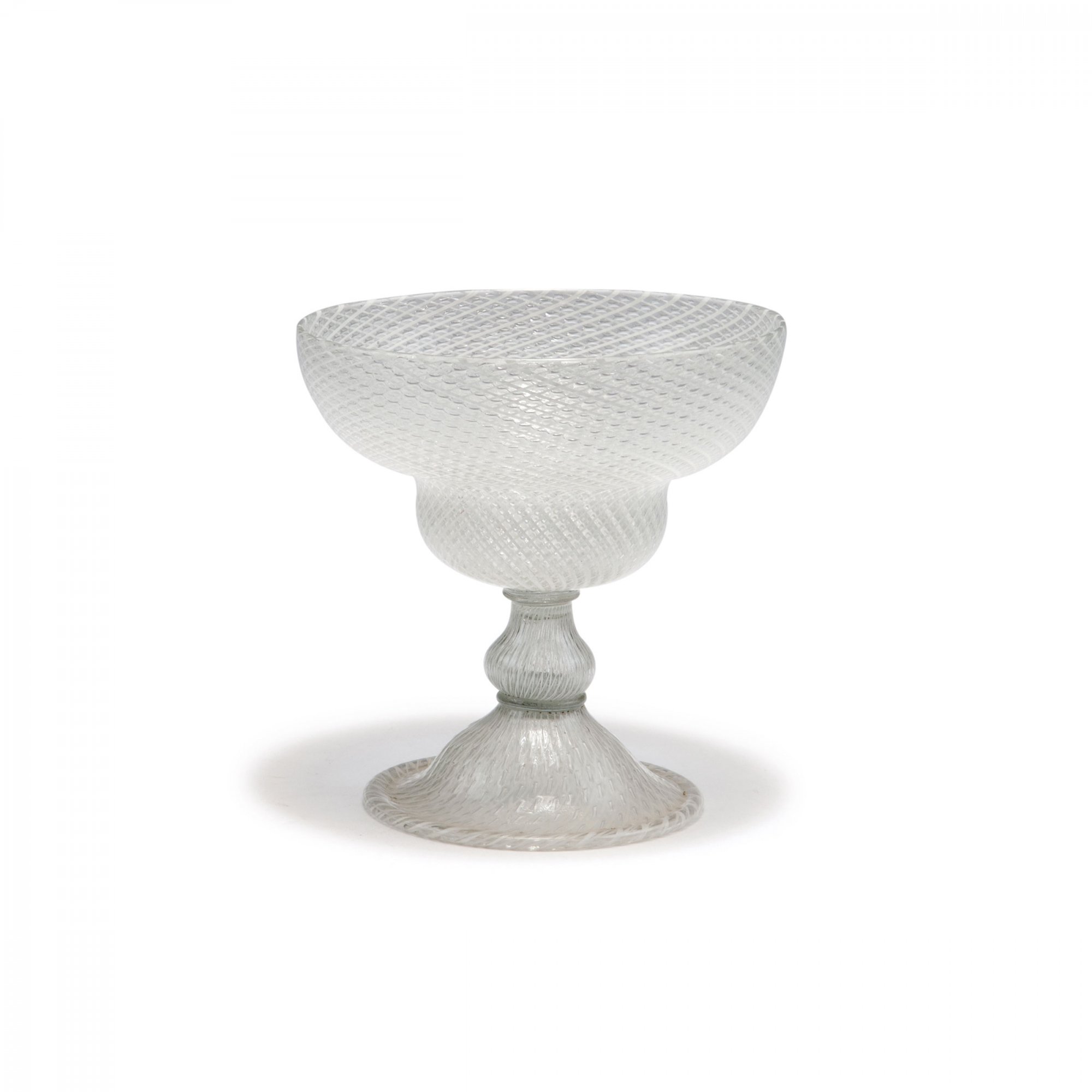 Murano. 'A reticello' goblet, end of the 16th/beginning of the 17th century. H. 14.3 cm. Glass rods, clear and opaque white, pricked air bubbles.