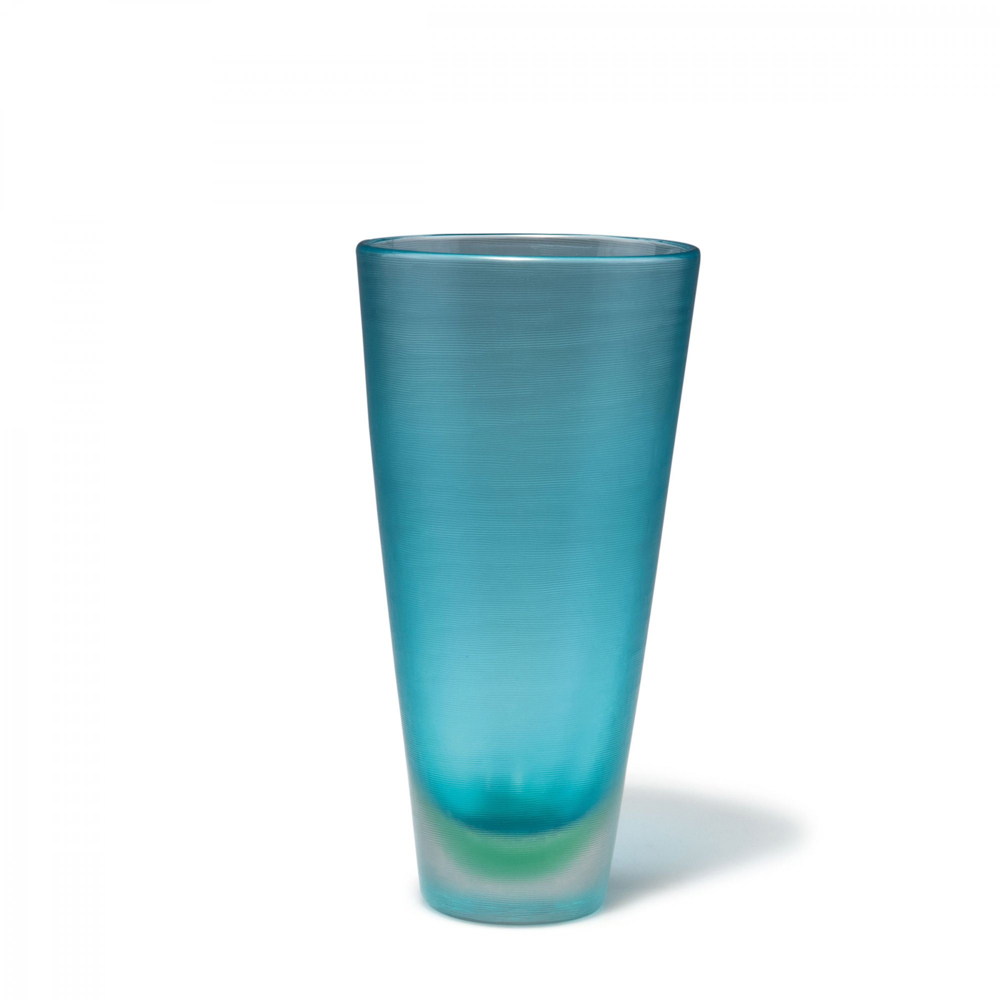 Paolo Venini. 'Inciso' vase, 1956. H. 20.6 cm. Made by Venini & C. Cased glass, clear and sky blue, surface cut. Marked: venini murano ITALIA (acid stamp).