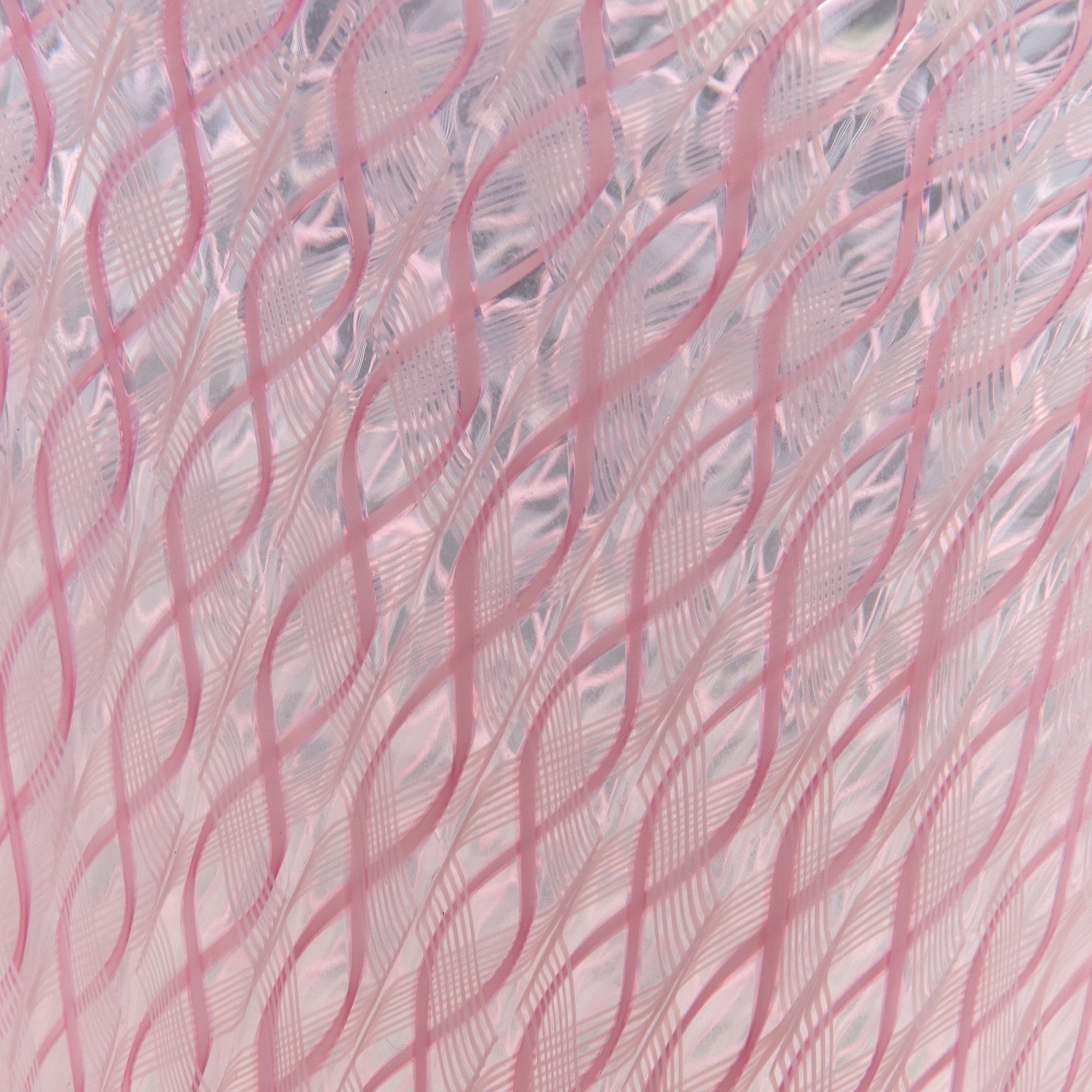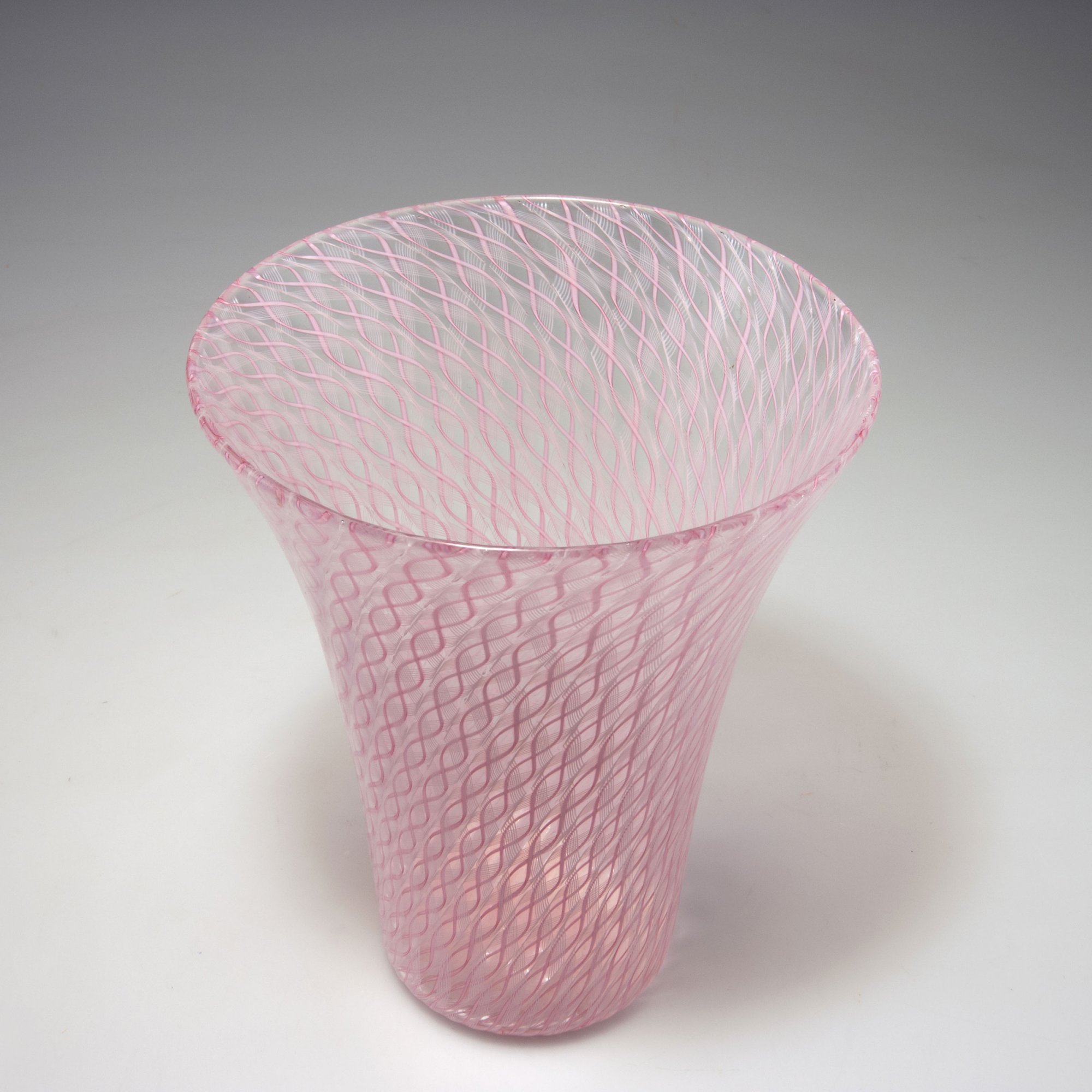Paolo Venini. 'Zanfirico' vase, c1954. H. 21.2 cm. Made by Venini & C. Ribbons with pink and white 'Zanfirico' spirals. Marked: venini murano ITALIA (acid stamp).