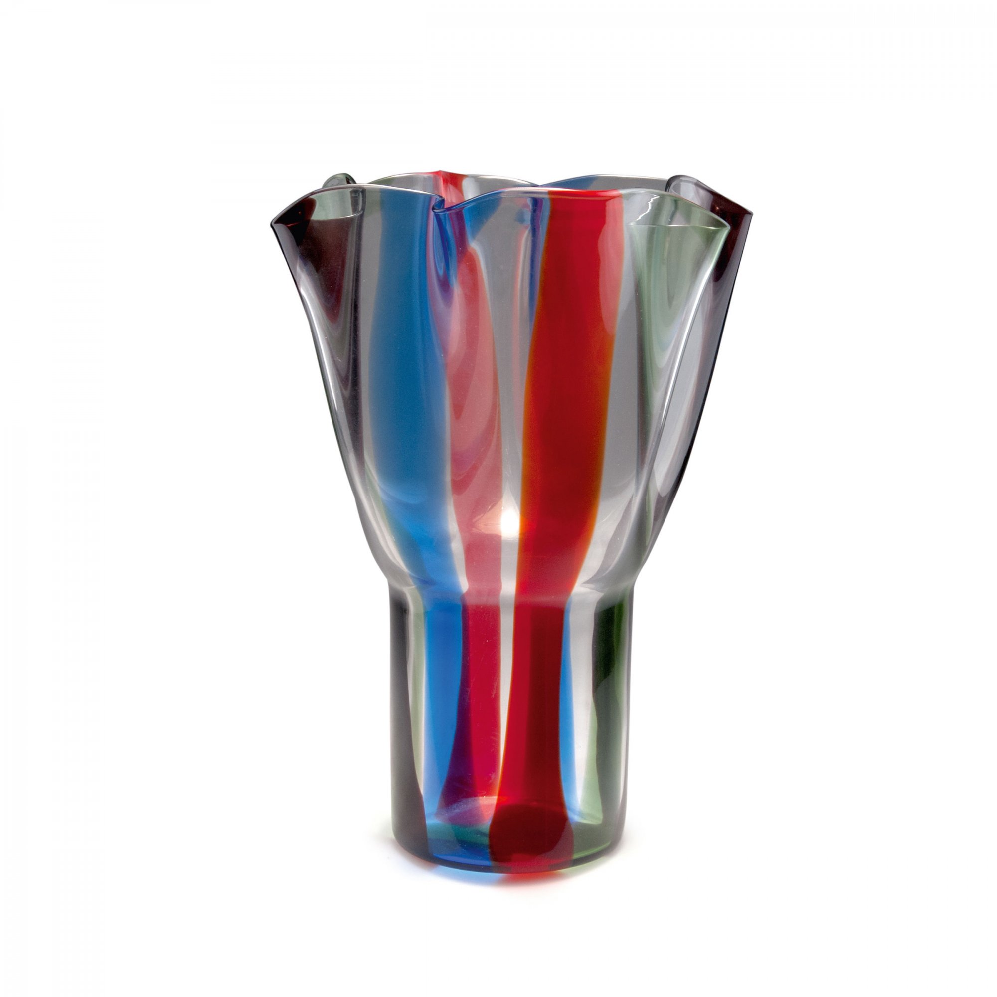 Timo Sarpaneva. 'Kukinto' vase, 1990. H. 48.5 cm. Made by Venini & C., in 1994. Clear glass, fused ribbons, purple, blue, red and green. Marked: venini 94 Sarpaneva (engraved).