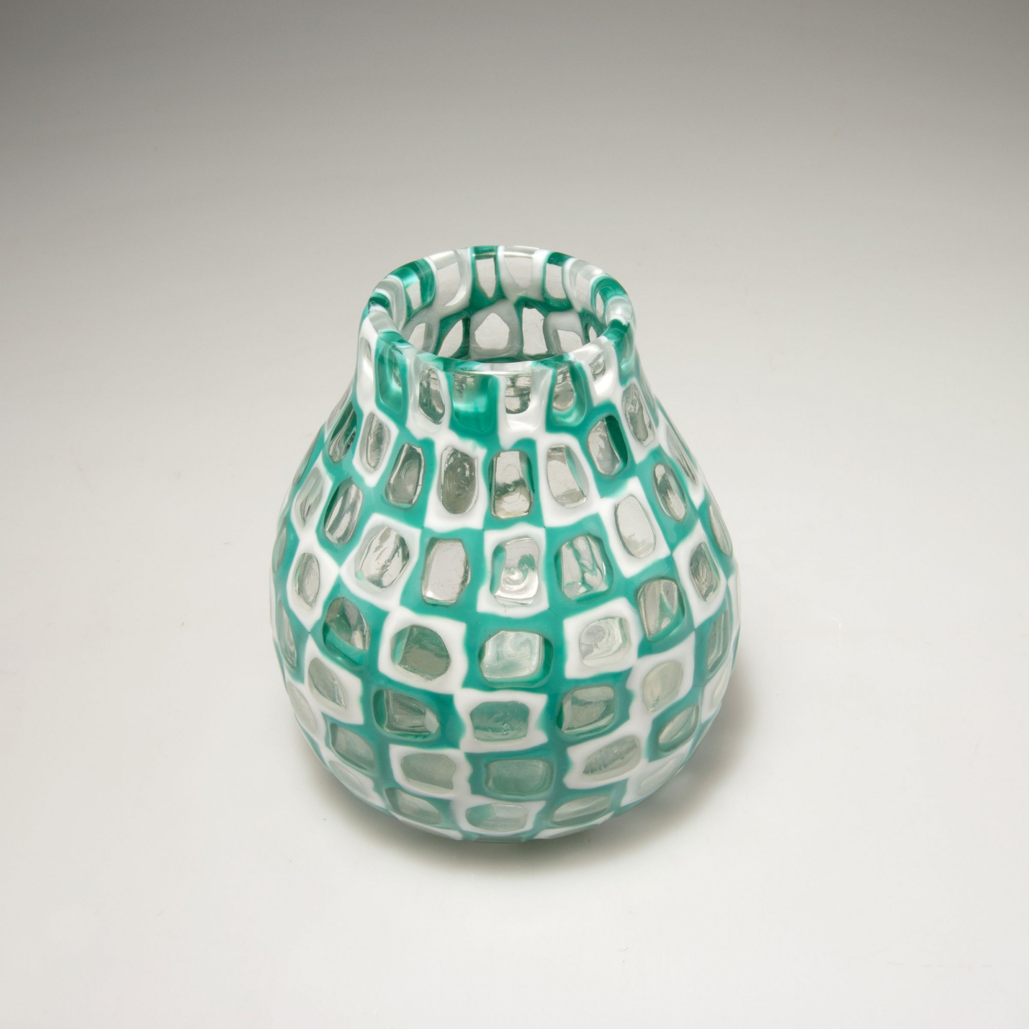 Tobia Scarpa. 'Occhi' vase, 1959/60. H. 13.5 cm. Made by Venini & C. Fused murrhines of white respectively green glass with clear core. Unmarked.