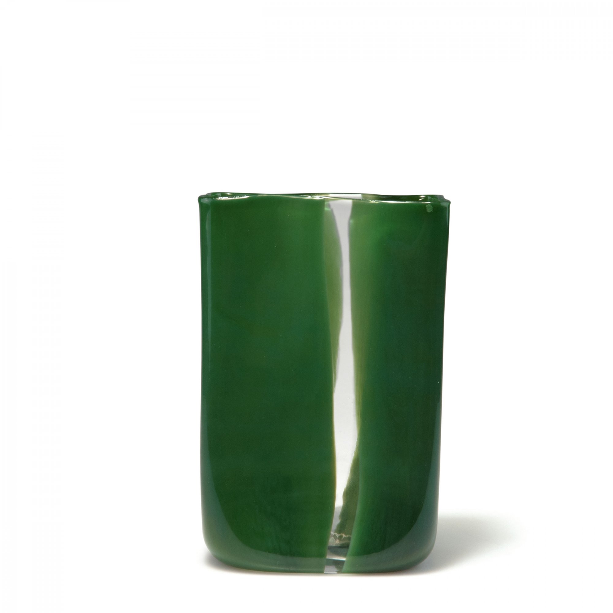 Toni Zuccheri. 'Scolpito' vase, 1968. H. 18.6 cm. Made by Venini & C. Cased glass, clear, partial green layer. Marked: venini italia (engraved).