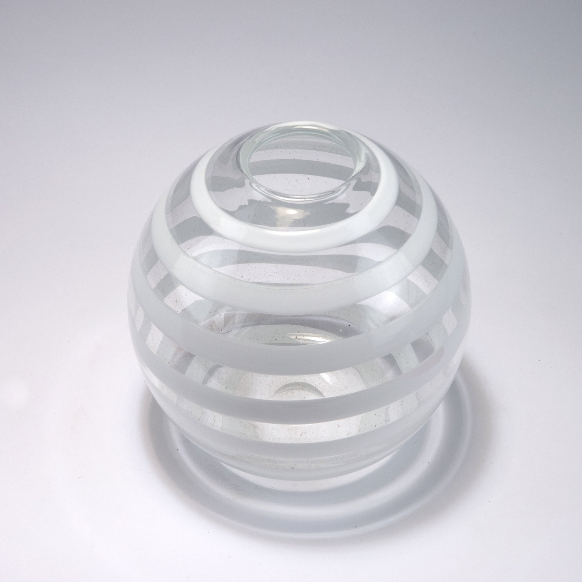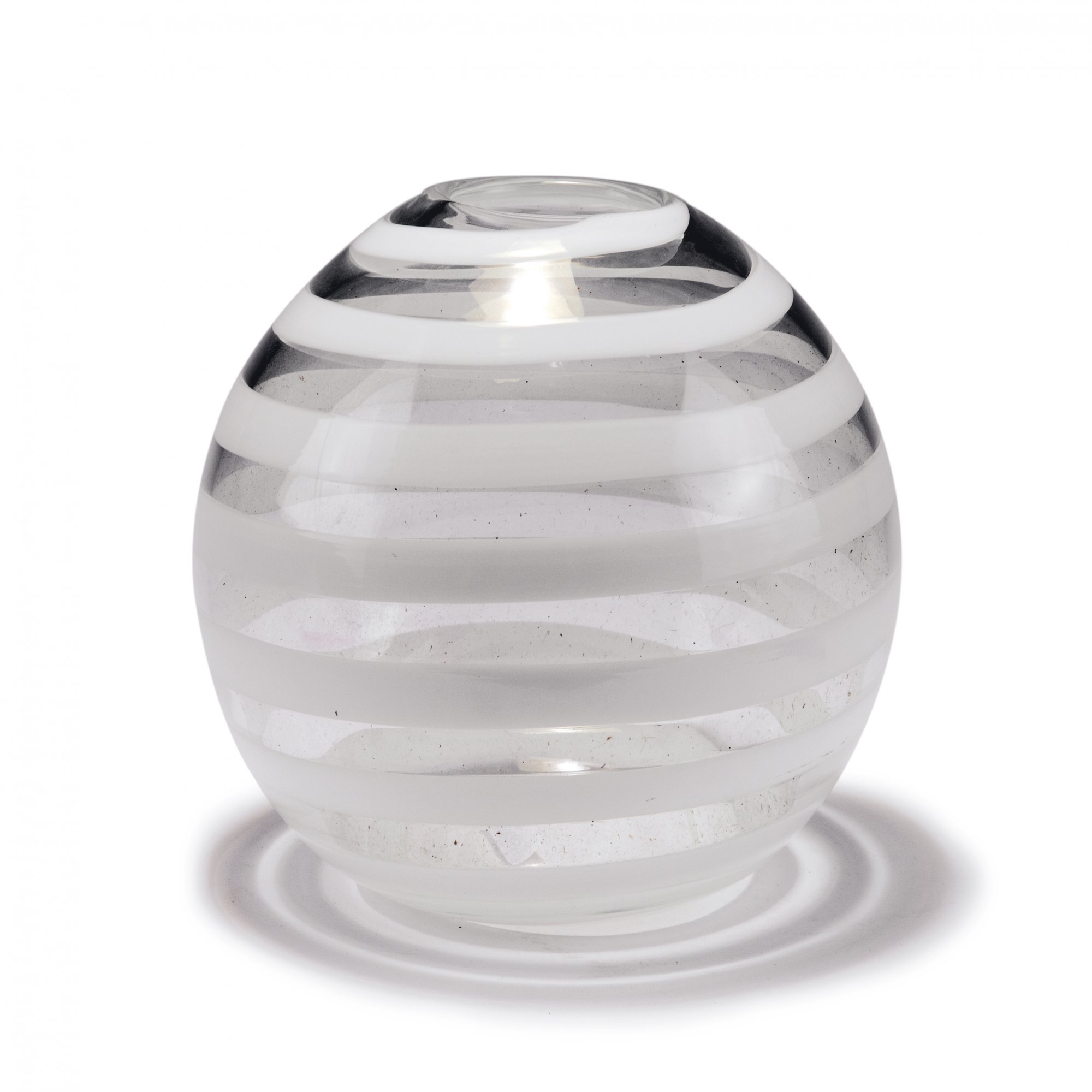 Carlo Scarpa. 'A spirale' vase, c1936. H. 19.5 cm. Made by Venini & C. Clear glass, white spiral. Marked: venini murano (acid stamp).
