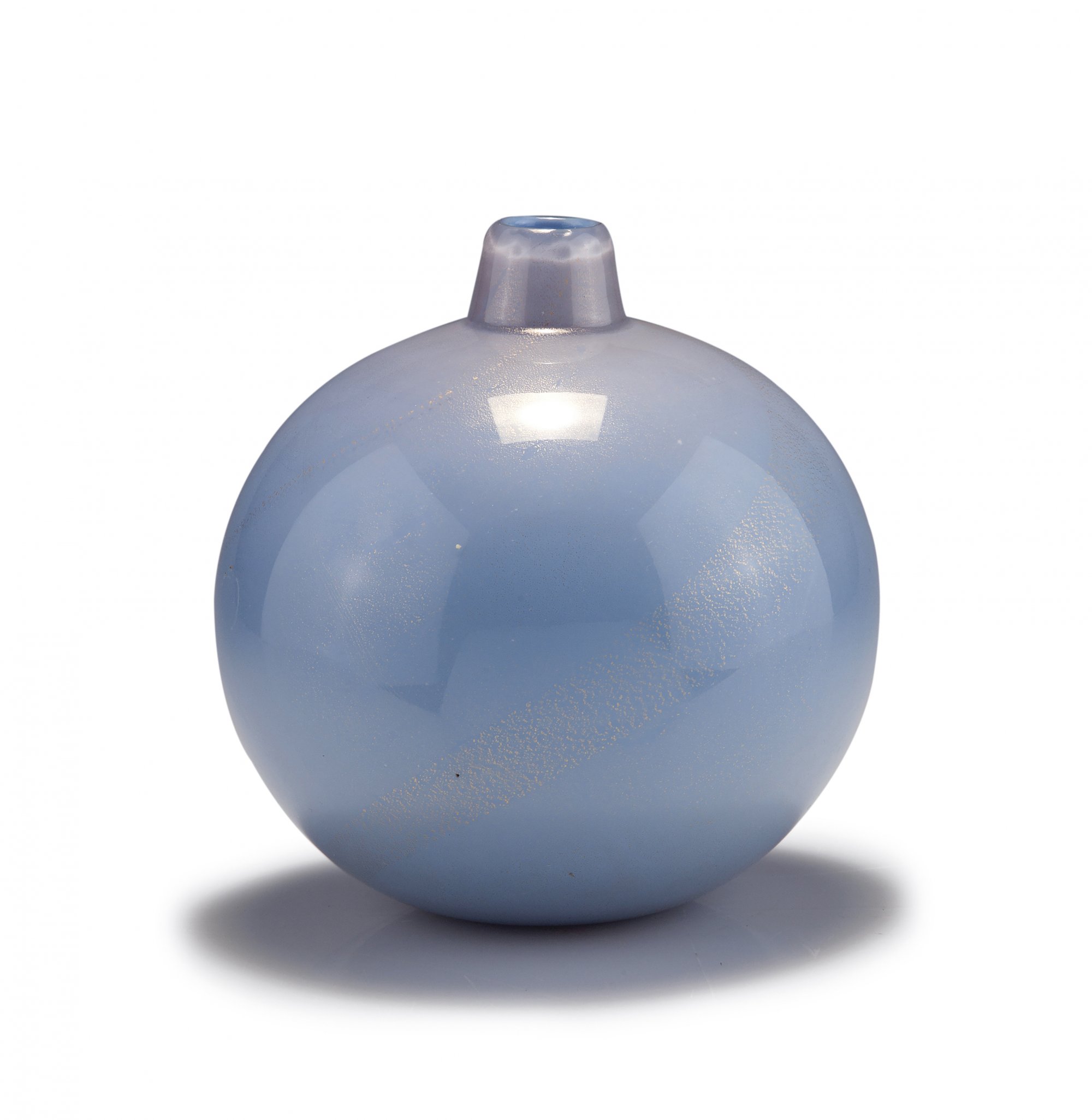 Carlo Scarpa. 'Velato' vase, 1938-40. H. 14.5 cm. Made by Venini & C. Thin cased glass, clear and opaque blue, fused burst gold foil. Marked: venini murano MADE IN ITALY (acid stamp).
