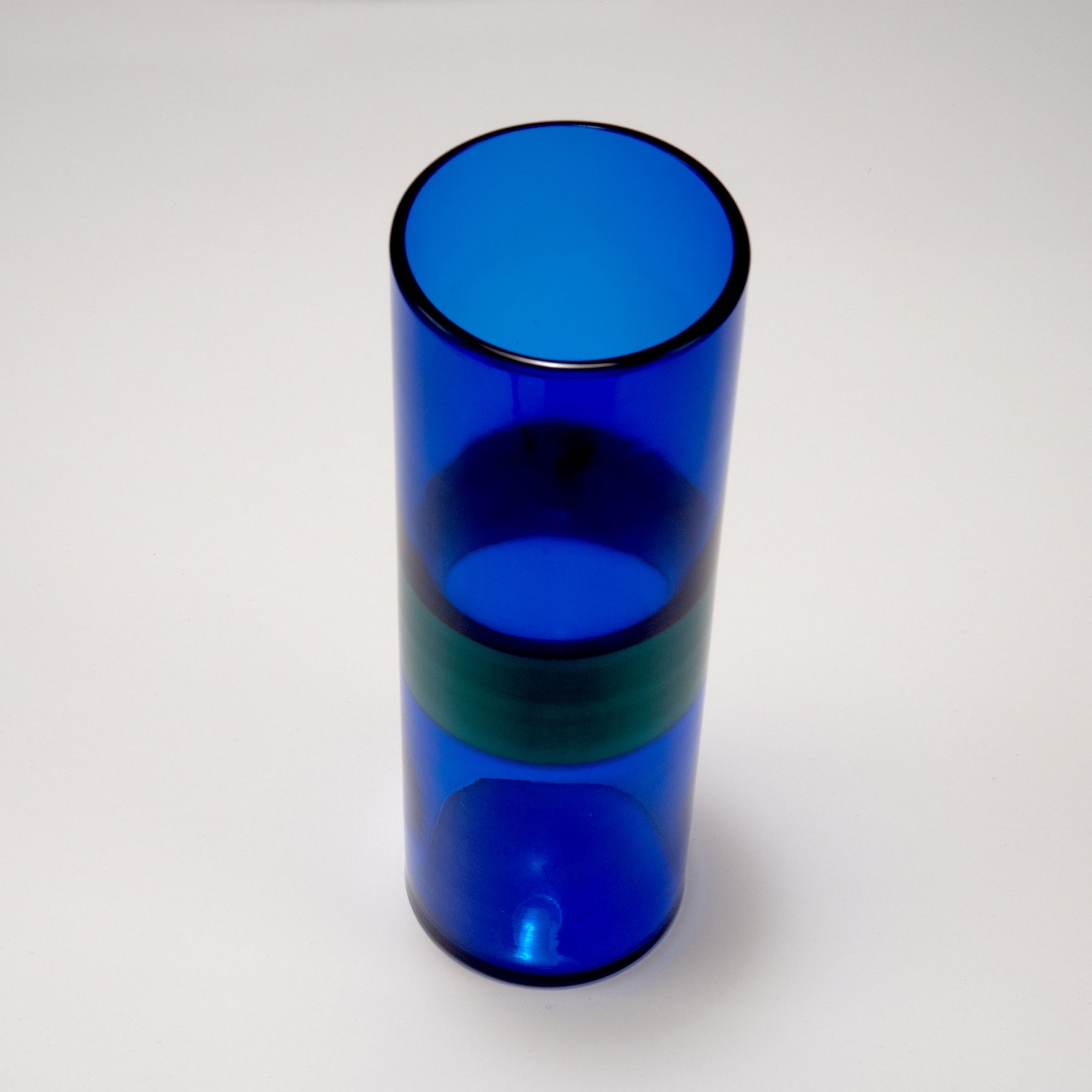 Fulvio Bianconi; Paolo Venini. 'A fasce' vase, c1953. H. 24 cm. Made by Venini & C. Cased glass, clear and blue, opaque green ribbon. Marked: venini murano ITALIA (acid stamp).