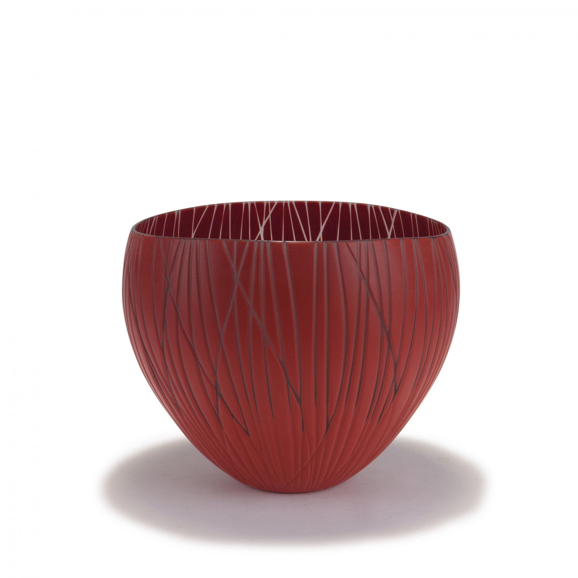 Monica Guggisberg; Philip Baldwin. 'Fili d'Ariana' vase, 2000. H. 20.5 cm. Made by Venini & C. Cased glass, clear and red, engraved. Marked: venini 2000 (engraved).