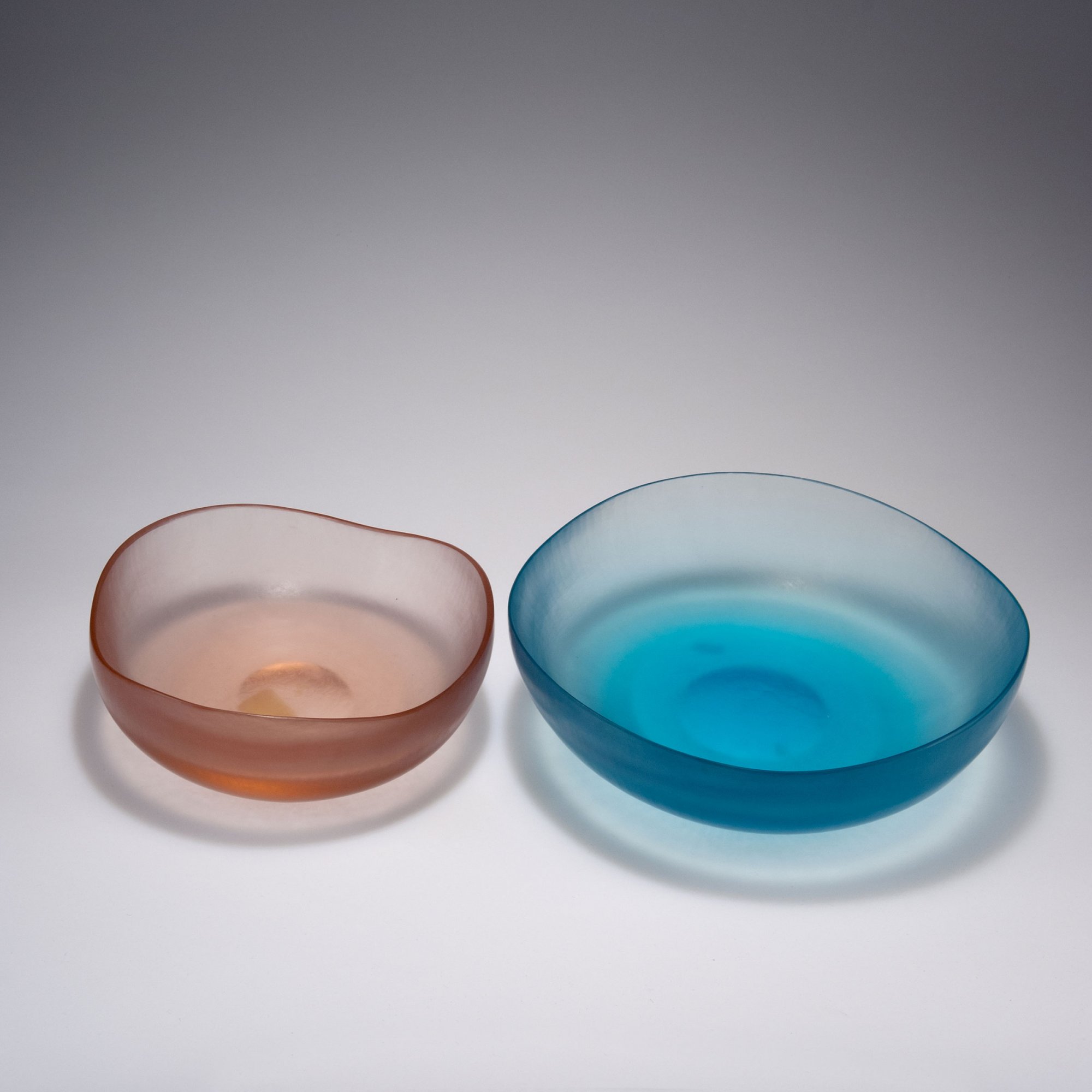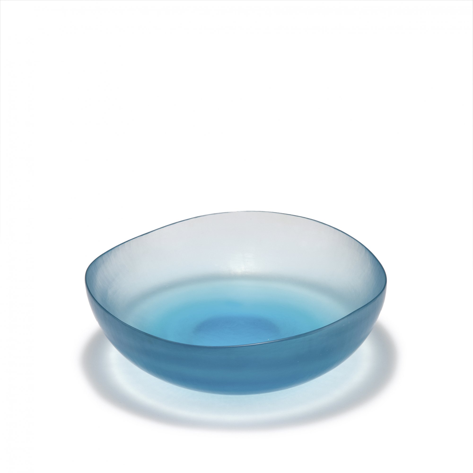 Tobia Scarpa. 'Battuto' bowl, c1957. H. 9.5 cm; D. 28.5 cm. Made by Venini & C. Cased glass, clear and sky blue, surface worked with the wheel, cut matt. Marked: venini murano ITALIA (acid stamp).
